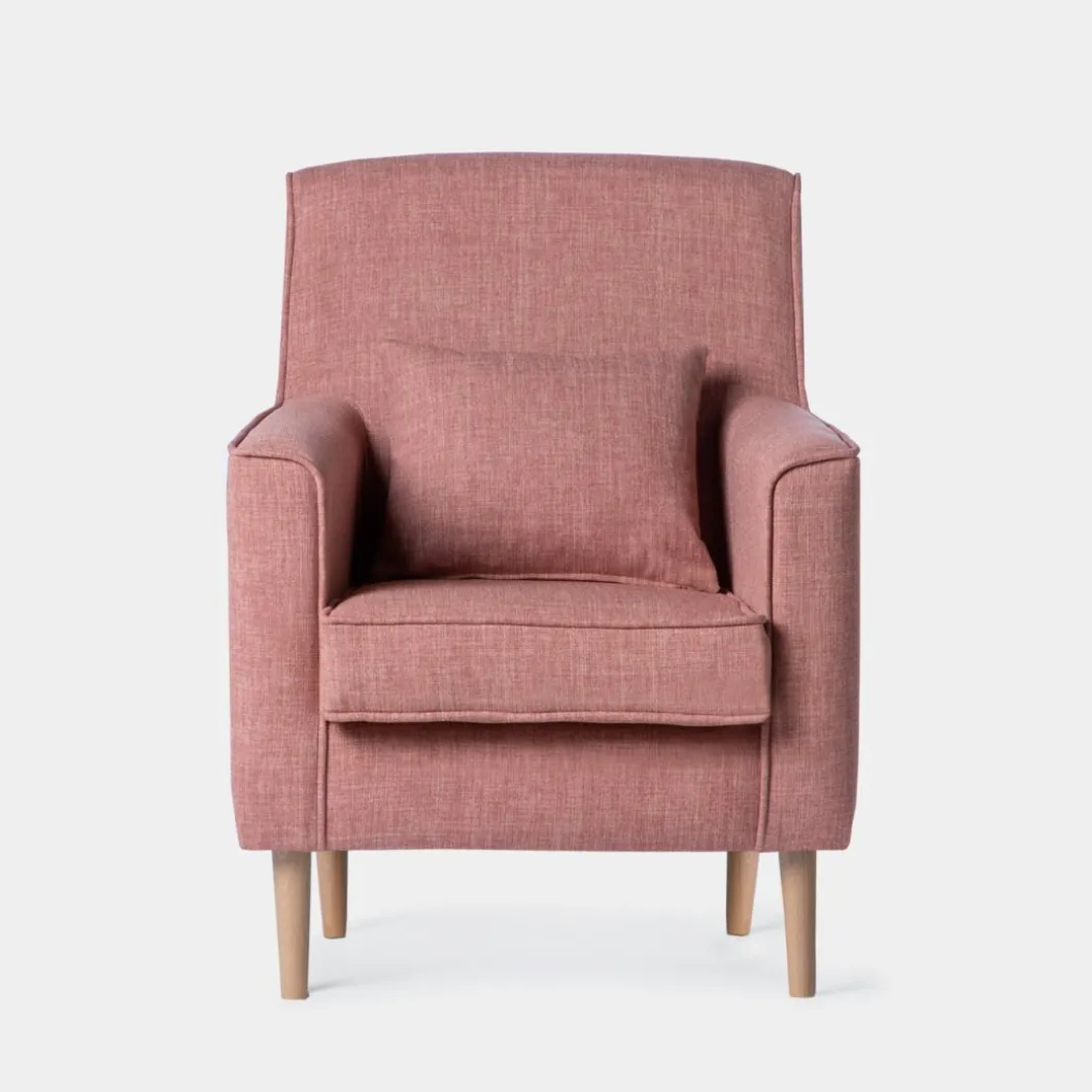 La butaca de lectura Naia en color rosa es ideal para completar cualquier salón, dormitorio o recibidor. Incluye un cojín desenfundable a juego con el tapizado de la butaca que le aporta mayor confort y comodidad a la zona lumbar. Está disponible en tres colores diferentes para que puedas escoger el que mejor se ajuste a tus gustos y necesidades.