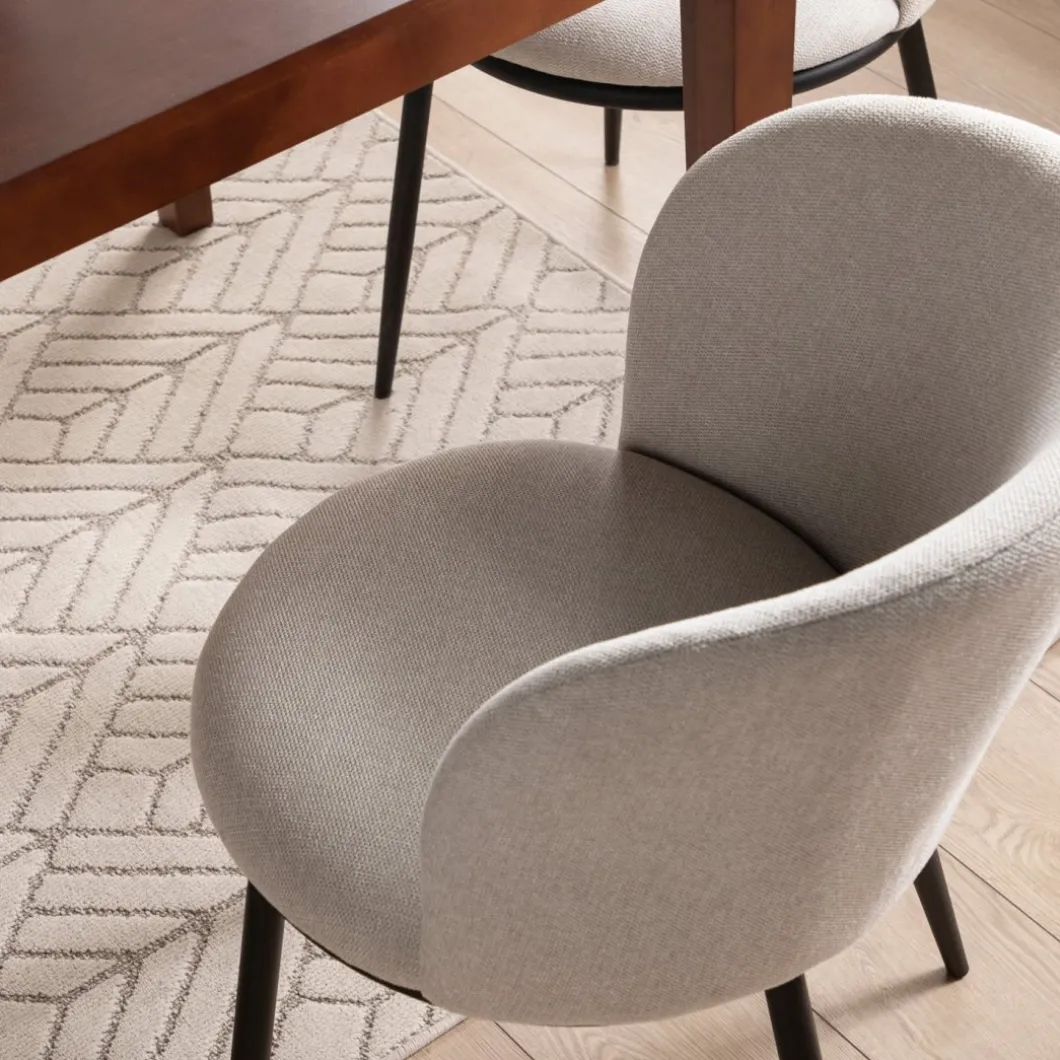 ¡Aprovéchate de este pack! La silla de comedor Nolan tapizada en beige con pata metálica negra es la pieza ideal para completar la decoración de tu hogar. Su respaldo curvado envuelve a la perfección la espalda y aporta una gran sensación de confort y comodidad. Está disponible en una amplia gama de tonos, escoge el que más te guste y crea un espacio lleno de encanto.