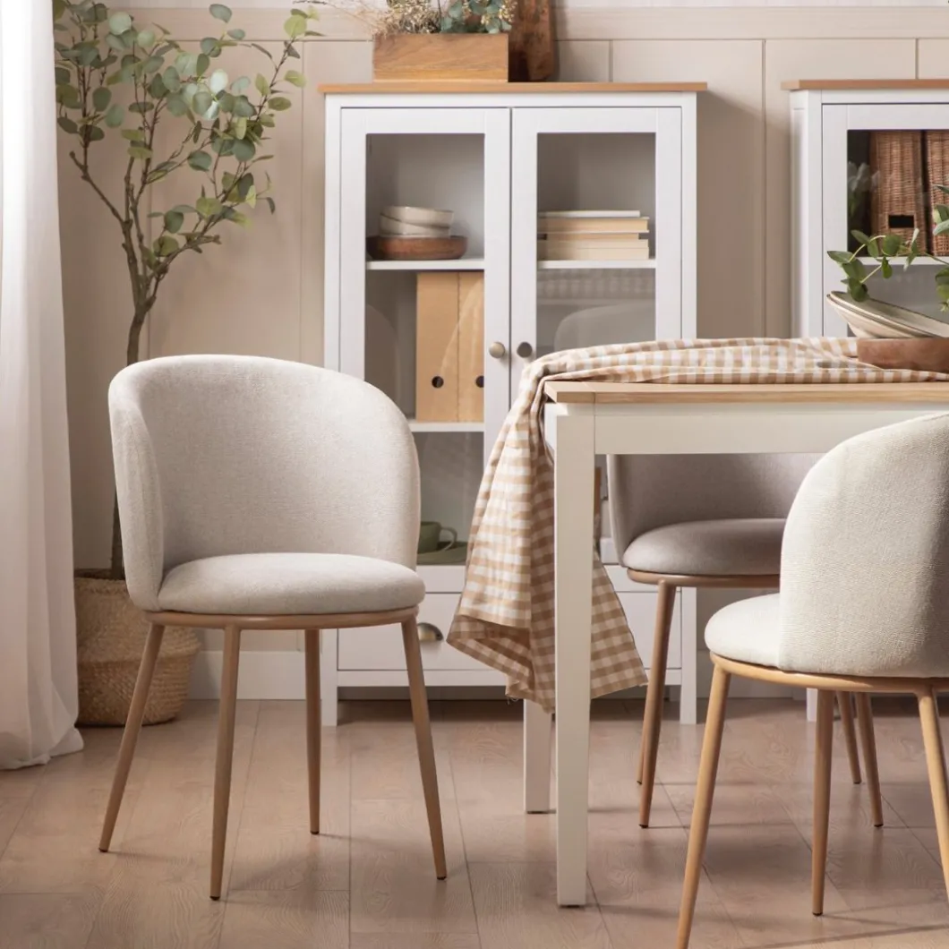 La silla de comedor Nolan tapizada en beige con pata natural es la pieza ideal para completar la decoración de tu hogar. Su respaldo curvado envuelve a la perfección la espalda y aporta una gran sensación de confort y comodidad. Está disponible en una amplia gama de tonos, escoge el que más te guste y crea un espacio lleno de encanto