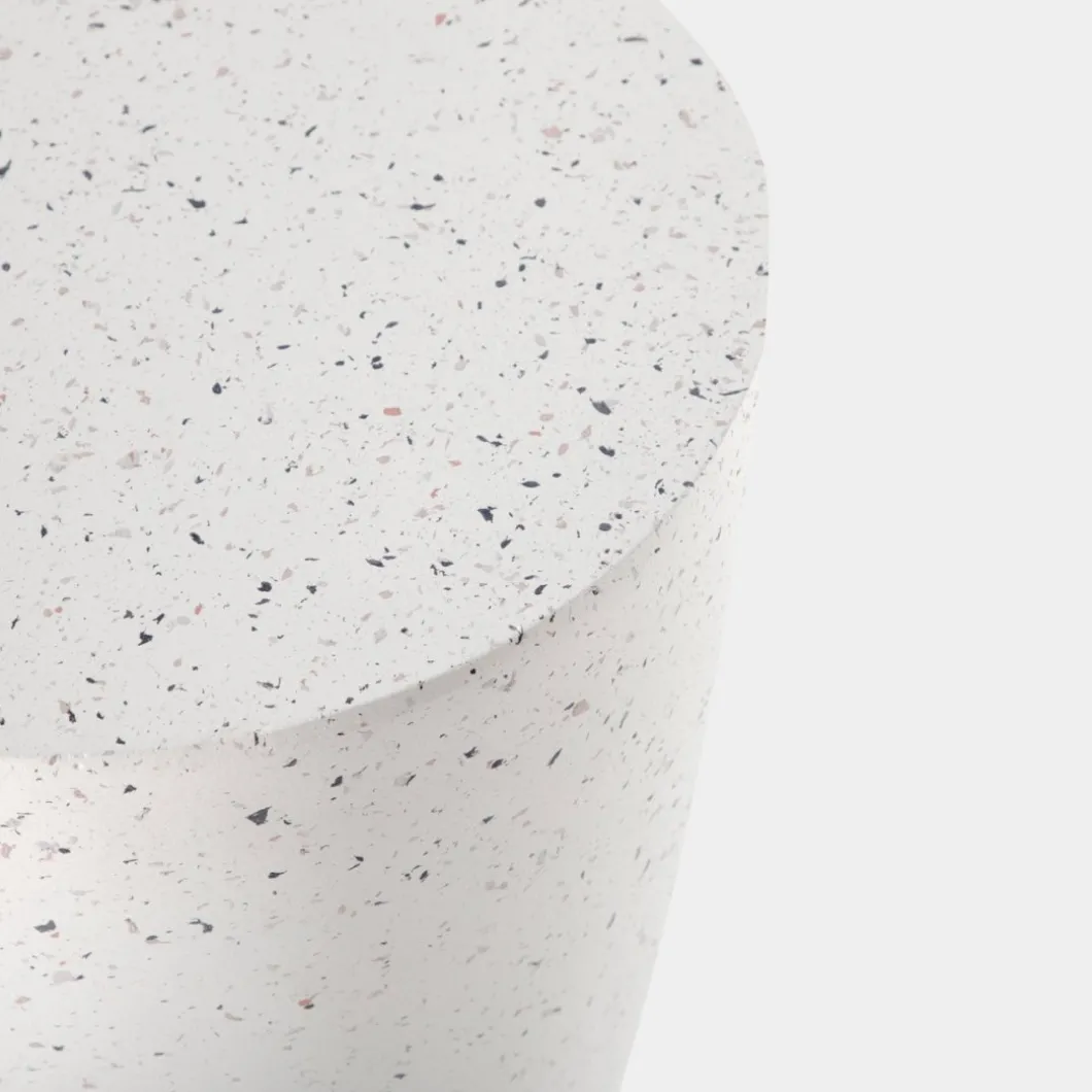La mesa auxiliar Nox, fabricada en fibra de magnesio con un acabado que simula el terrazo, es ideal para interiores y exteriores. Su diseño orgánico y minimalista se adapta a cualquier espacio, ya sea como mesa de café, soporte para plantas o pieza decorativa. Combínala con la mesa Orion para crear una composición elegante y con estilo.