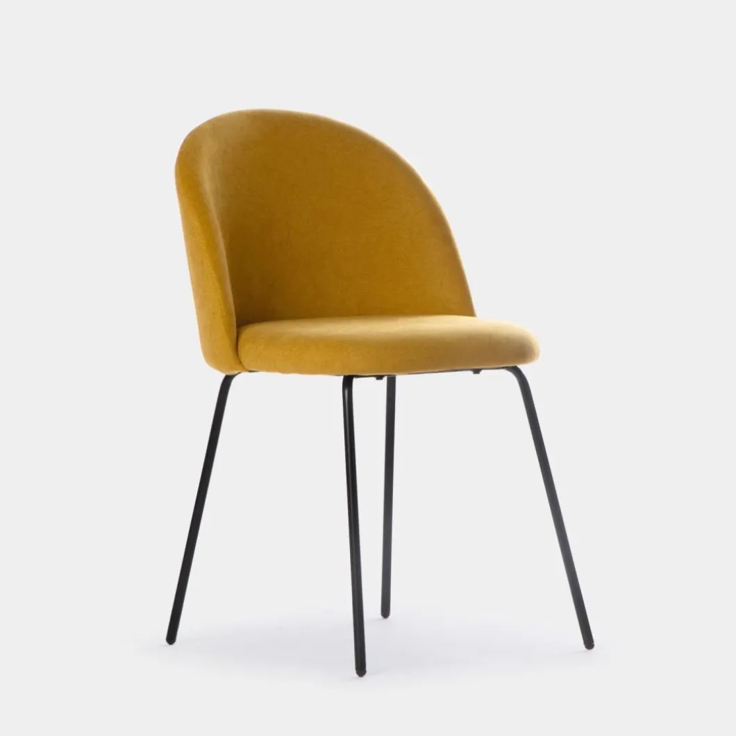 La silla de comedor Olivia en tapizado de poliéster mostaza y pata metálica negra tiene un diseño elegante y sencillo inspirado en los años 50. Su respaldo corto y redondeado unido al diseño de sus patas cónicas despuntadas recuerdan a esos modelos de sillería sofisticados y funcionales adaptables a cualquier estilo. Elige entre una de nuestras 3 tonalidades de tapizados disponibles y haz de esta silla un elemento distintivo de tu salón, comedor o escritorio.