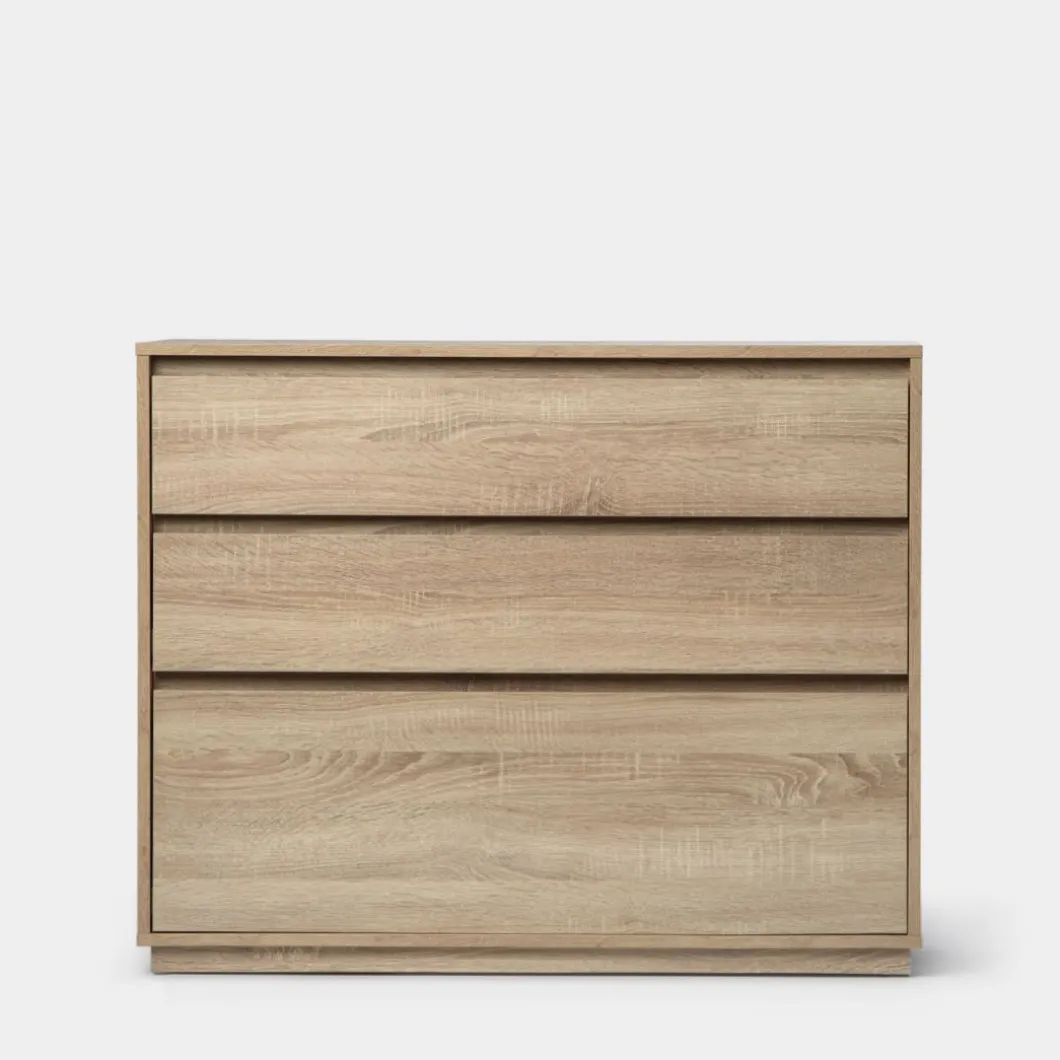 La cómoda Oslo tiene un diseño de líneas sencillas hace que sea un mueble que combine con todo. De diseño nórdico, esta cómoda cuenta con tres cajones, siendo el inferior de ellos más grande para que puedas guardar aquello que ocupa mayor volumen. Con esta cómoda mantendrás el orden en tu dormitorio. Está disponible en varios colores. Para mayor estabilidad, aconsejamos su anclaje a la pared.