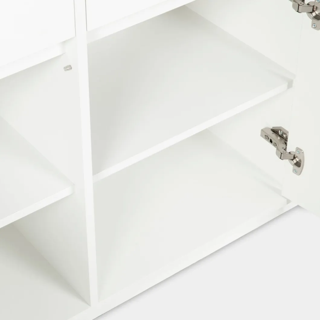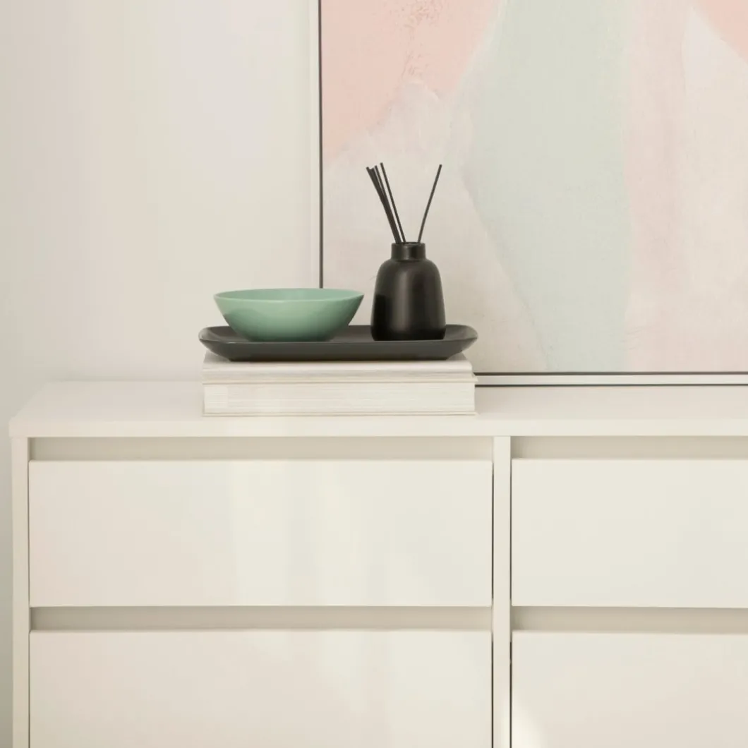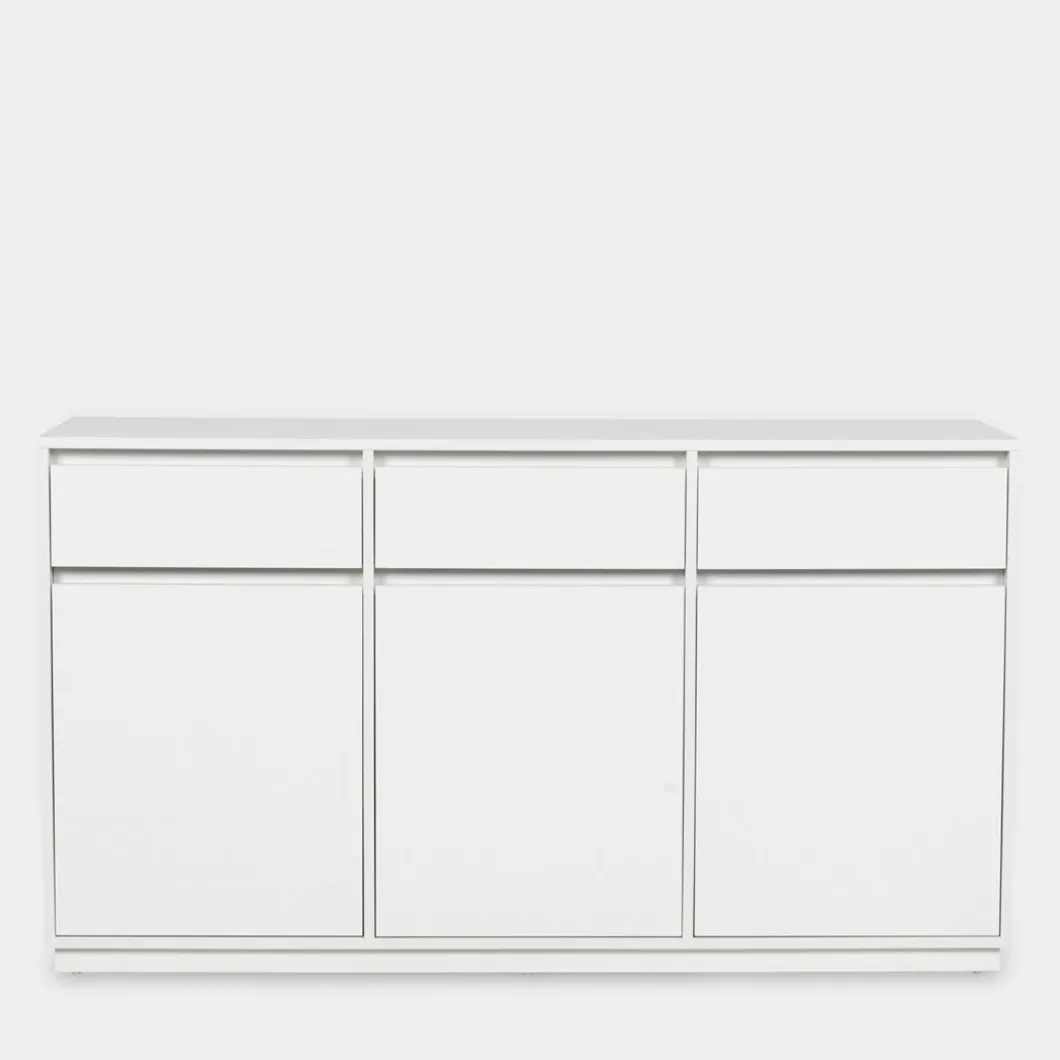 Dale un toque nórdico a tu hogar con el aparador Oslo en madera de color blanco. Equipado con tres cajones superiores y tres puertas abatibles, este mueble ofrece un amplio espacio de almacenamiento, perfecto para organizar tus pertenencias con comodidad y estilo. Además, puedes completar la atmósfera combinándolo con otras piezas de la colección Oslo, creando así un ambiente acogedor y armonioso en tu hogar.
