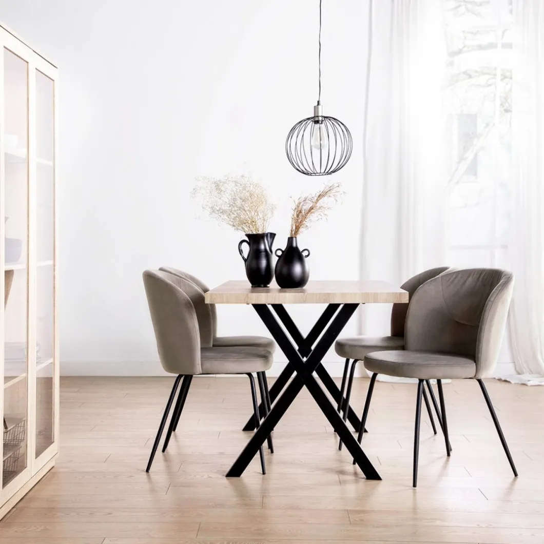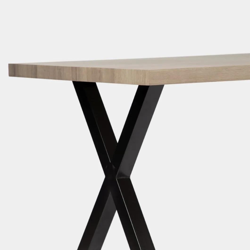 La mesa de comedor rectangular Parks de estilo industrial no te la puedes perder. Incorpora un tablero en acabado natural con patas en forma de cruz de metal pintado negro que le dan un aire actual y de tendencia. Es muy gruesa y resistente.Es apta para 6 comensales e ideal para compartir tus mejores momentos con familia o amigos. Su estilo atemporal la hace perfecta para tu salón comedor, cocina o incluso mesa de reuniones en tu oficina.