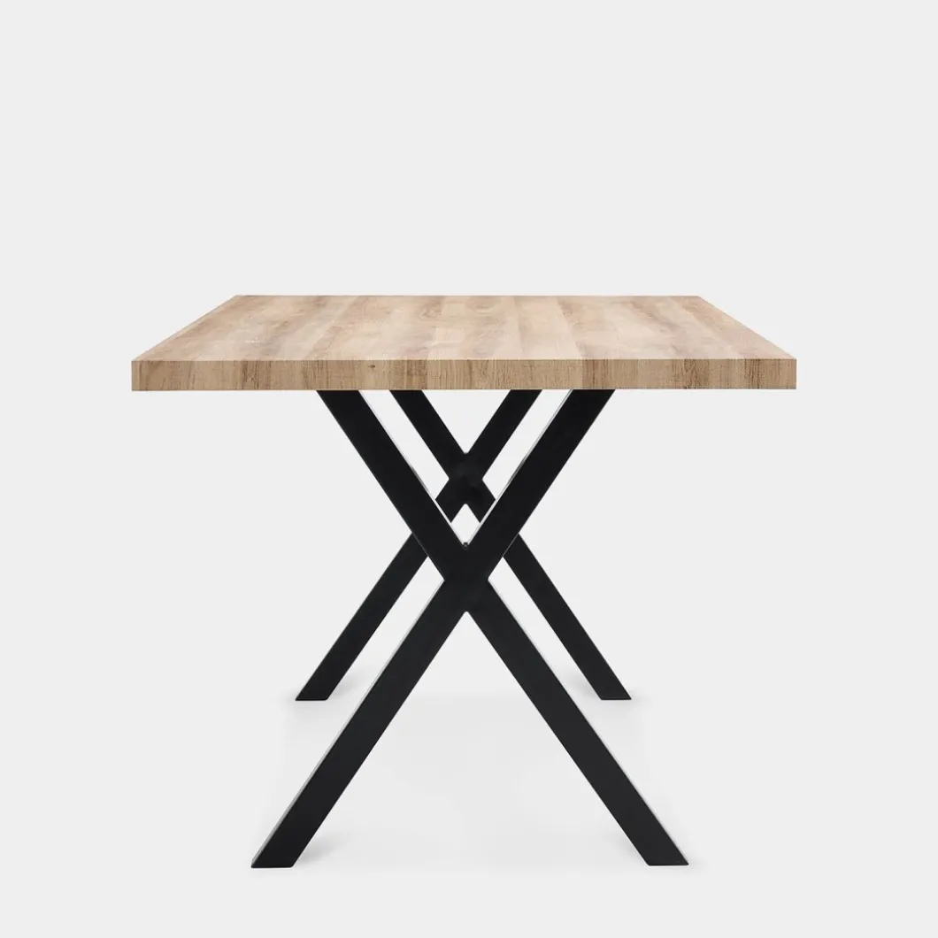 Potencia tu salón con la elegancia de la mesa de comedor rectangular Parks. Con su sobre de acabado natural y sus patas metálicas negras en forma de cruz, añade un toque contemporáneo y de moda a cualquier entorno. Con capacidad para 6 comensales, es la opción ideal para compartir momentos memorables con tus seres queridos. Su estilo atemporal la convierte en el complemento perfecto para tu salón comedor, cocina o incluso como mesa de reuniones en tu espacio de trabajo.