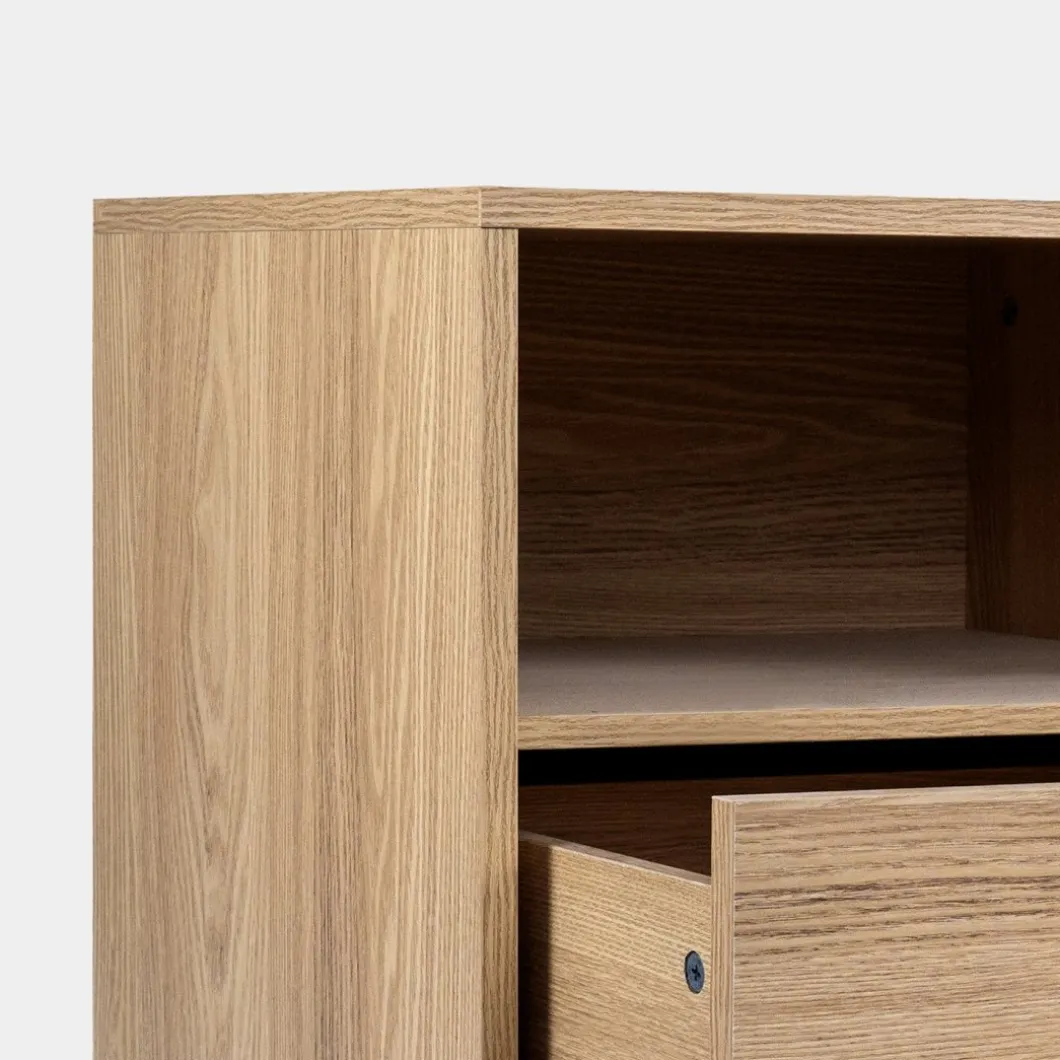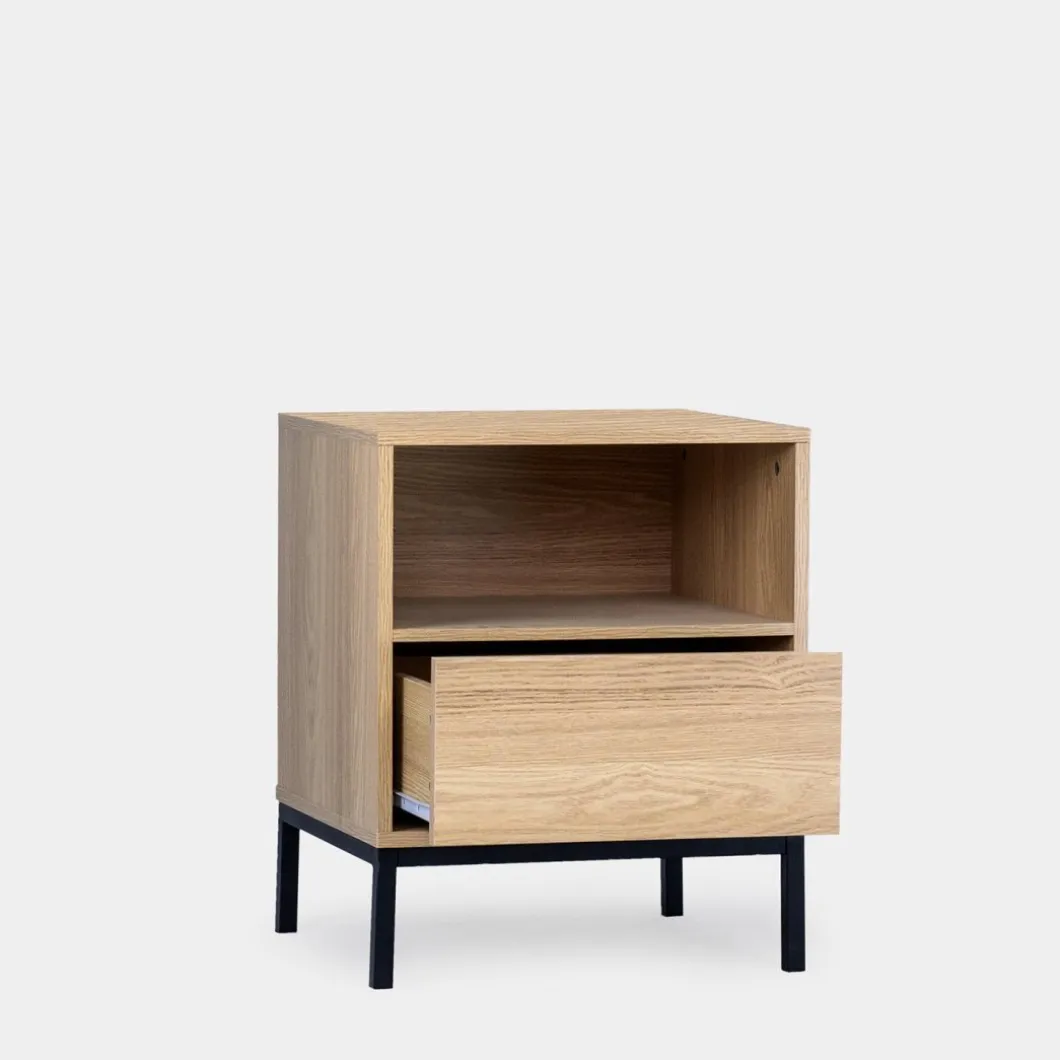 ¡Aprovéchate de este pack! Añade un toque de elegancia y funcionalidad a tu dormitorio con la mesita de noche Remi. Su estante superior y amplio cajón ofrecen un espacio de almacenamiento práctico y discreto para tus objetos personales. Combínala con los muebles del resto de la colección Remi y consigue un look completo y armonioso para tu hogar.