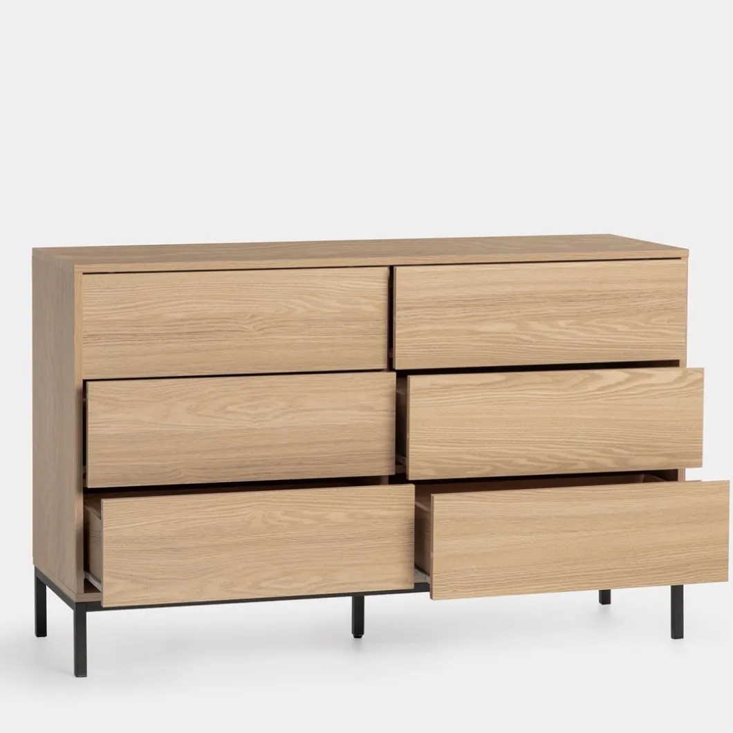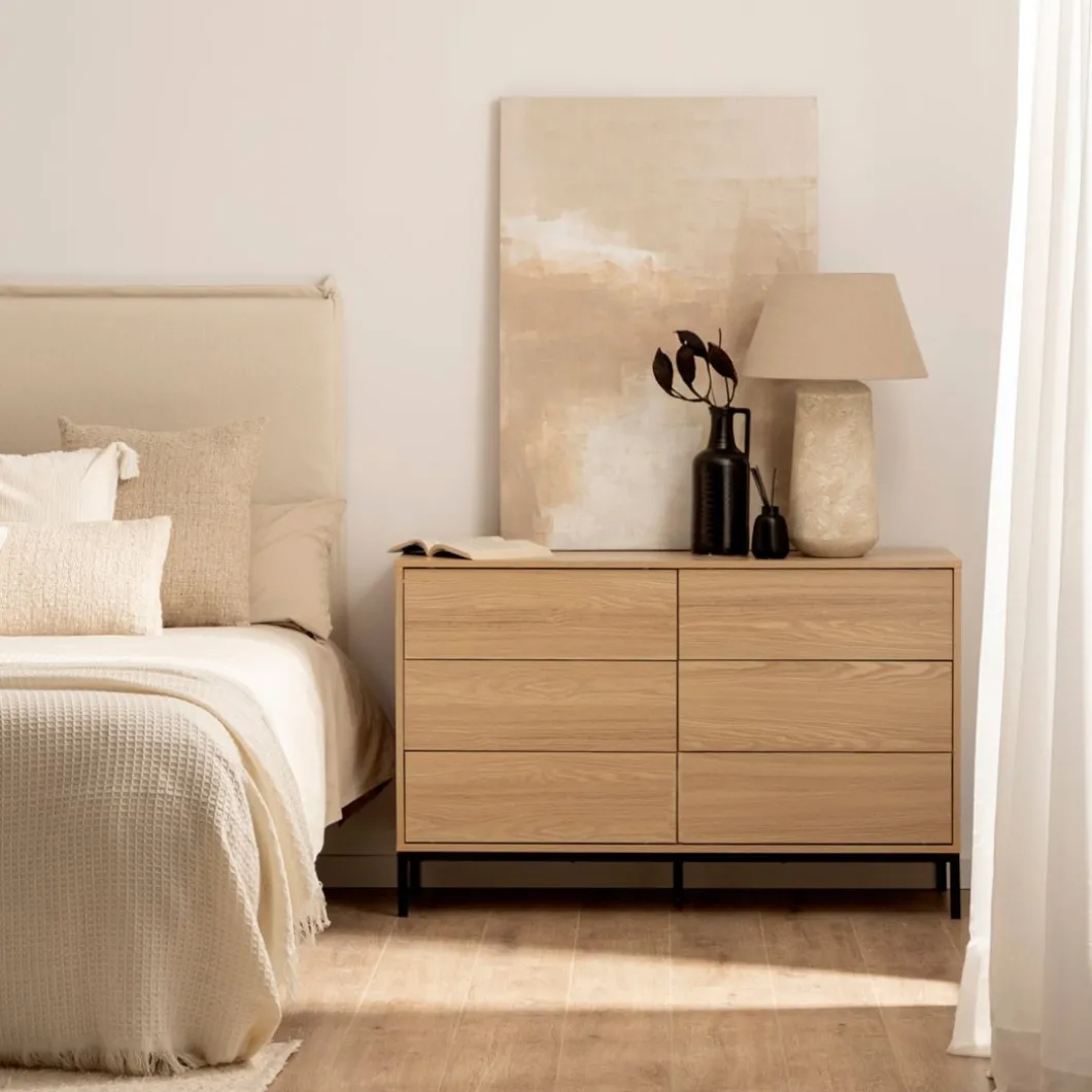 Transforma tu espacio con la cómoda de 6 cajones Remi, una pieza que combina estilo y funcionalidad. Sus seis espaciosos cajones permiten mantener la ropa, accesorios y otros objetos personales bien organizados y al alcance. Ideal para dormitorios, vestidores o cualquier rincón de la casa que necesite un toque de orden y sofisticación. Completa tu hogar con la elegancia y practicidad de la colección Remi.