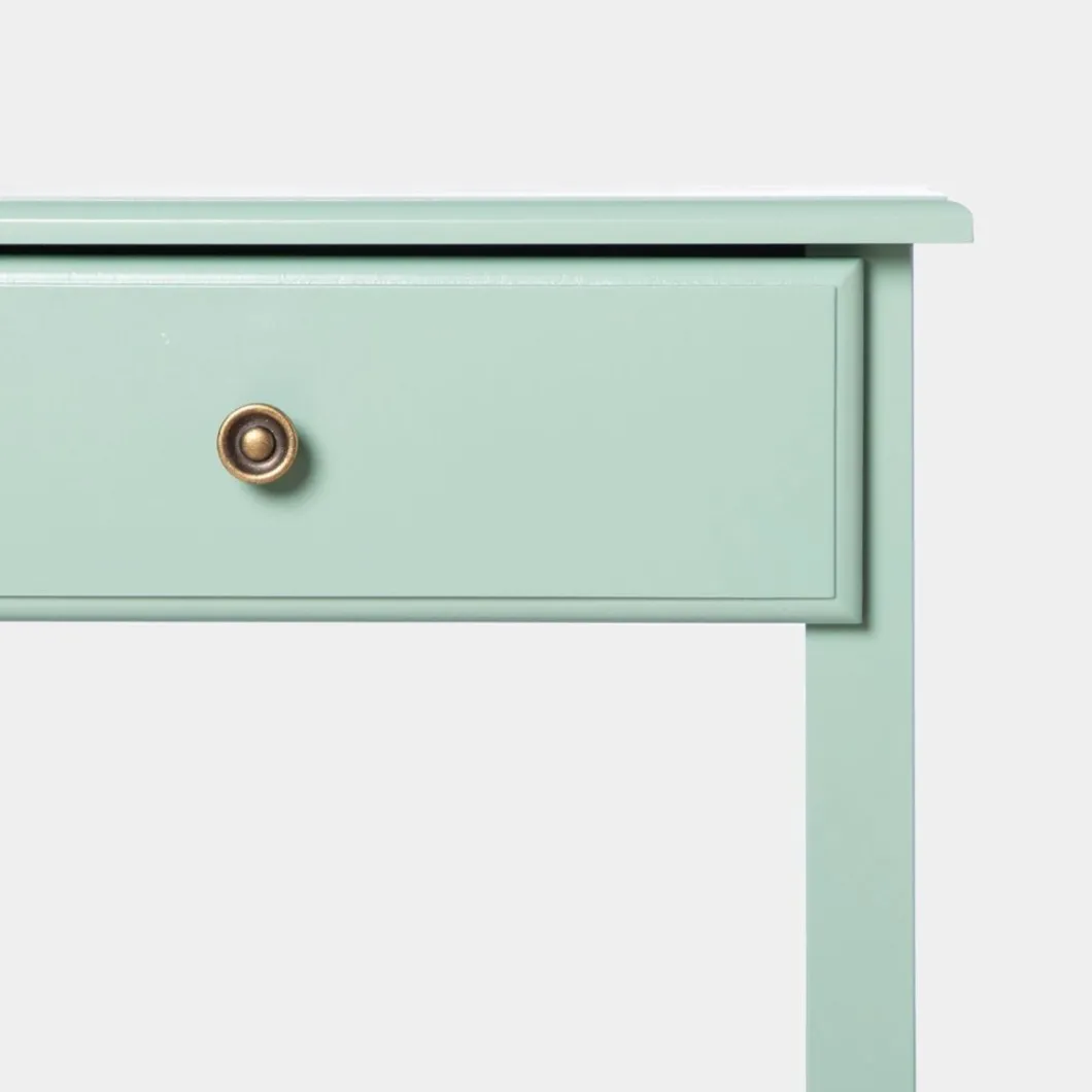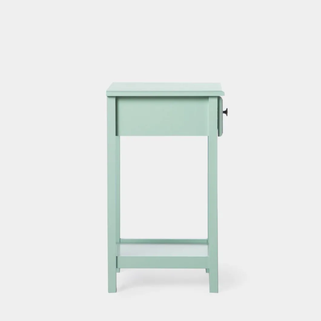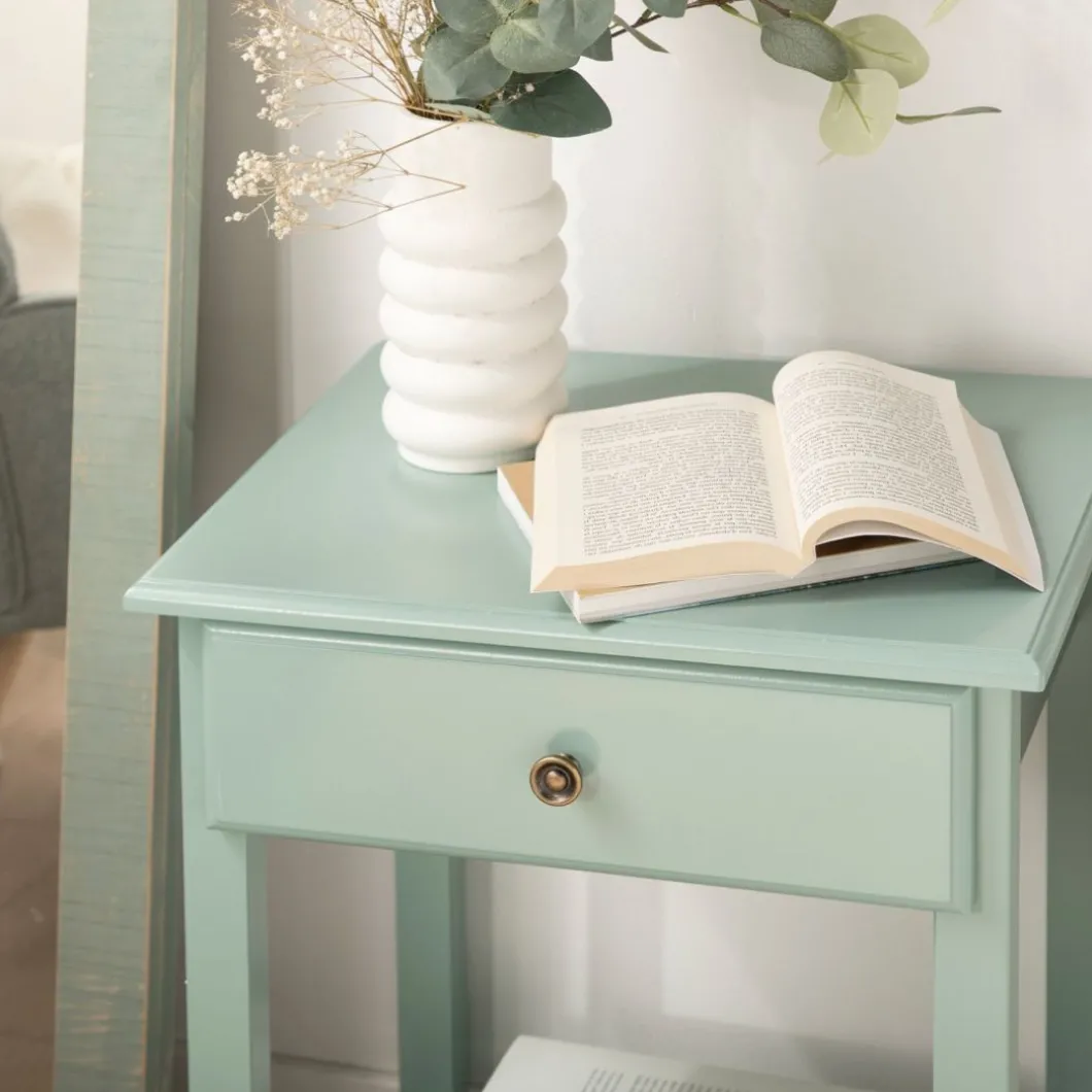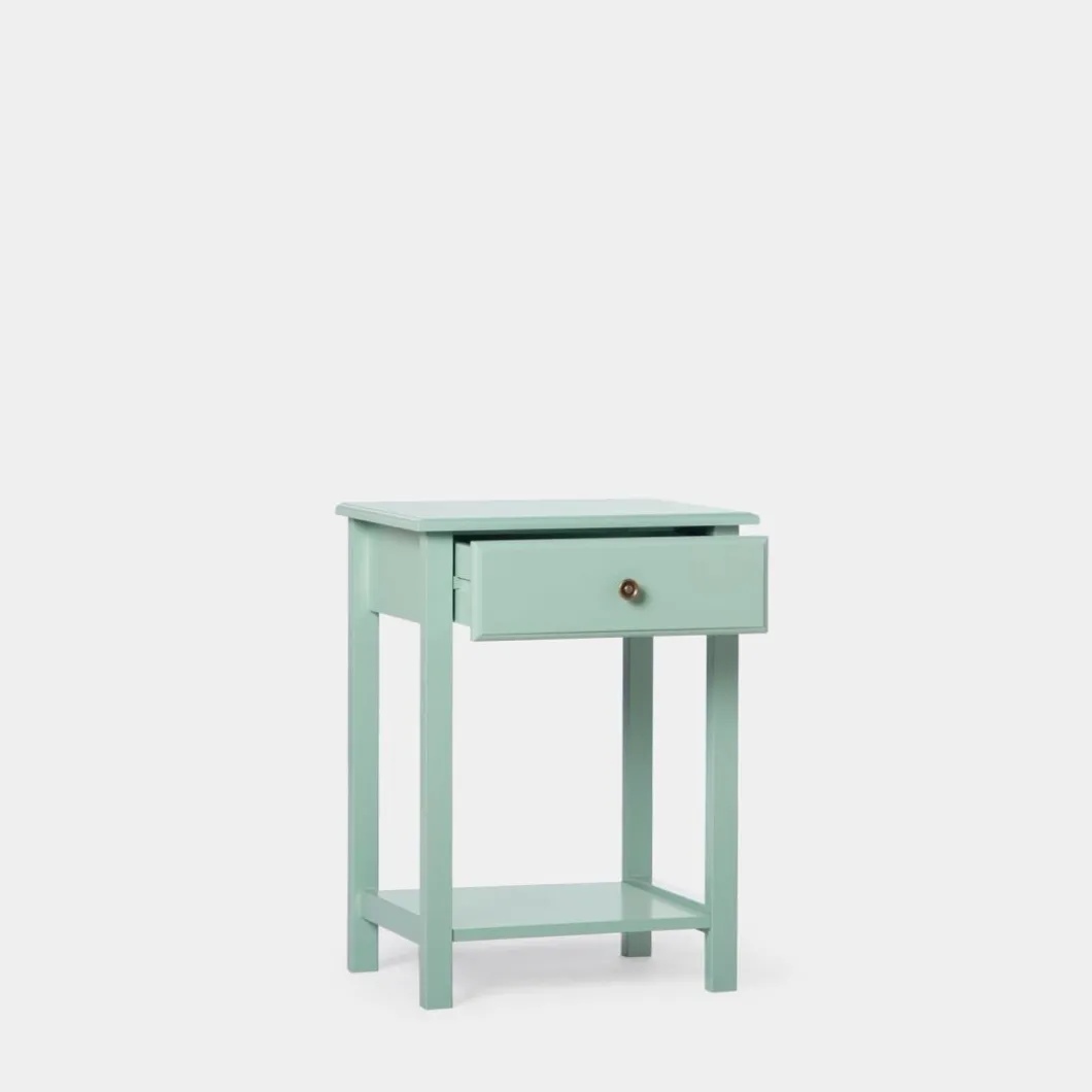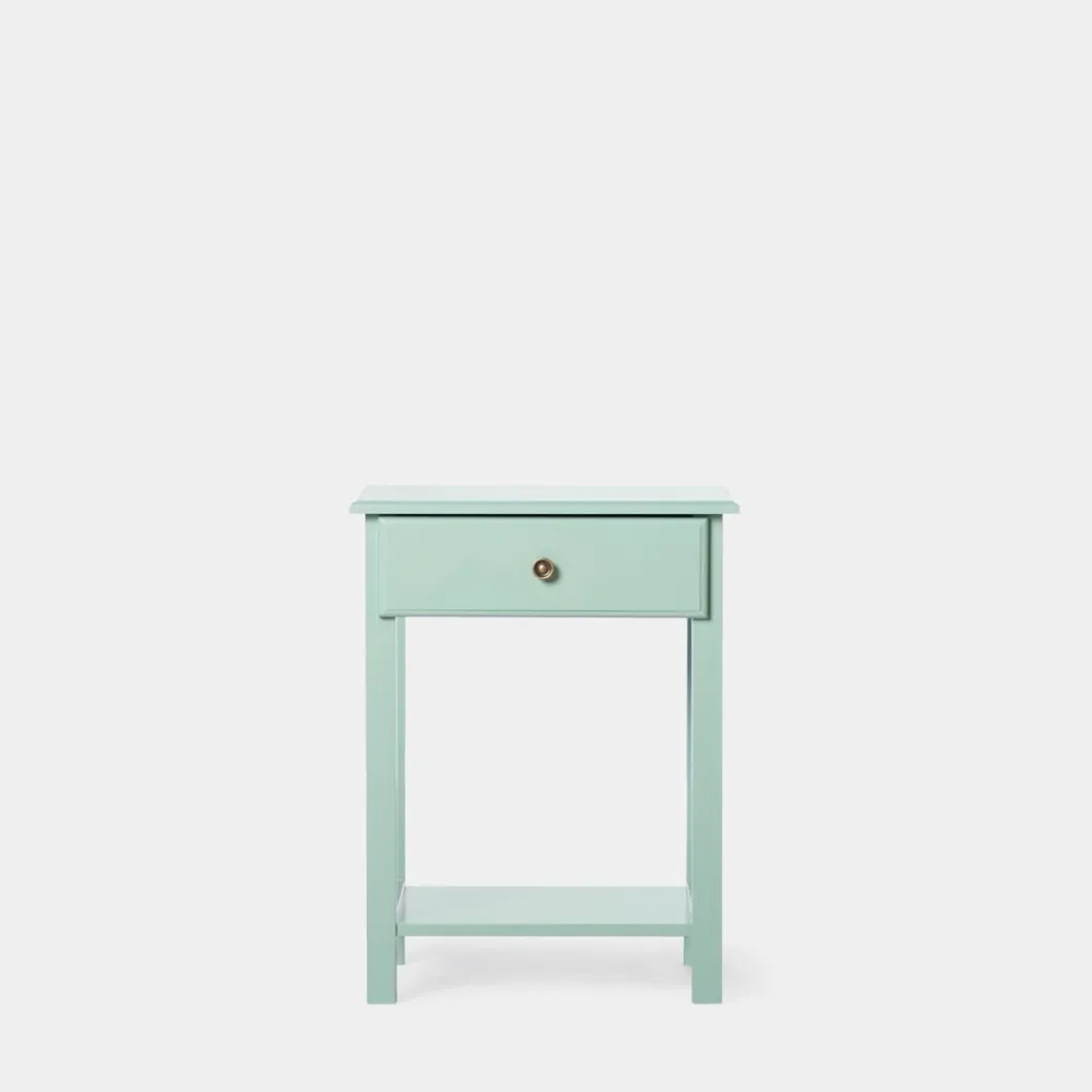 La mesita de noche lacada en menta de 1 cajón Ruan encajará a la perfección en tu dormitorio. Cuenta con un cajón y un estante inferior que te ayudará a poner orden y contar con algo de almacenamiento extra. Está disponible en varios acabados, escoge el que más encaje con tu estilo.