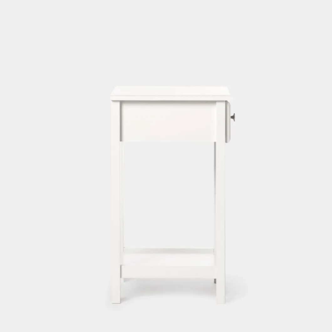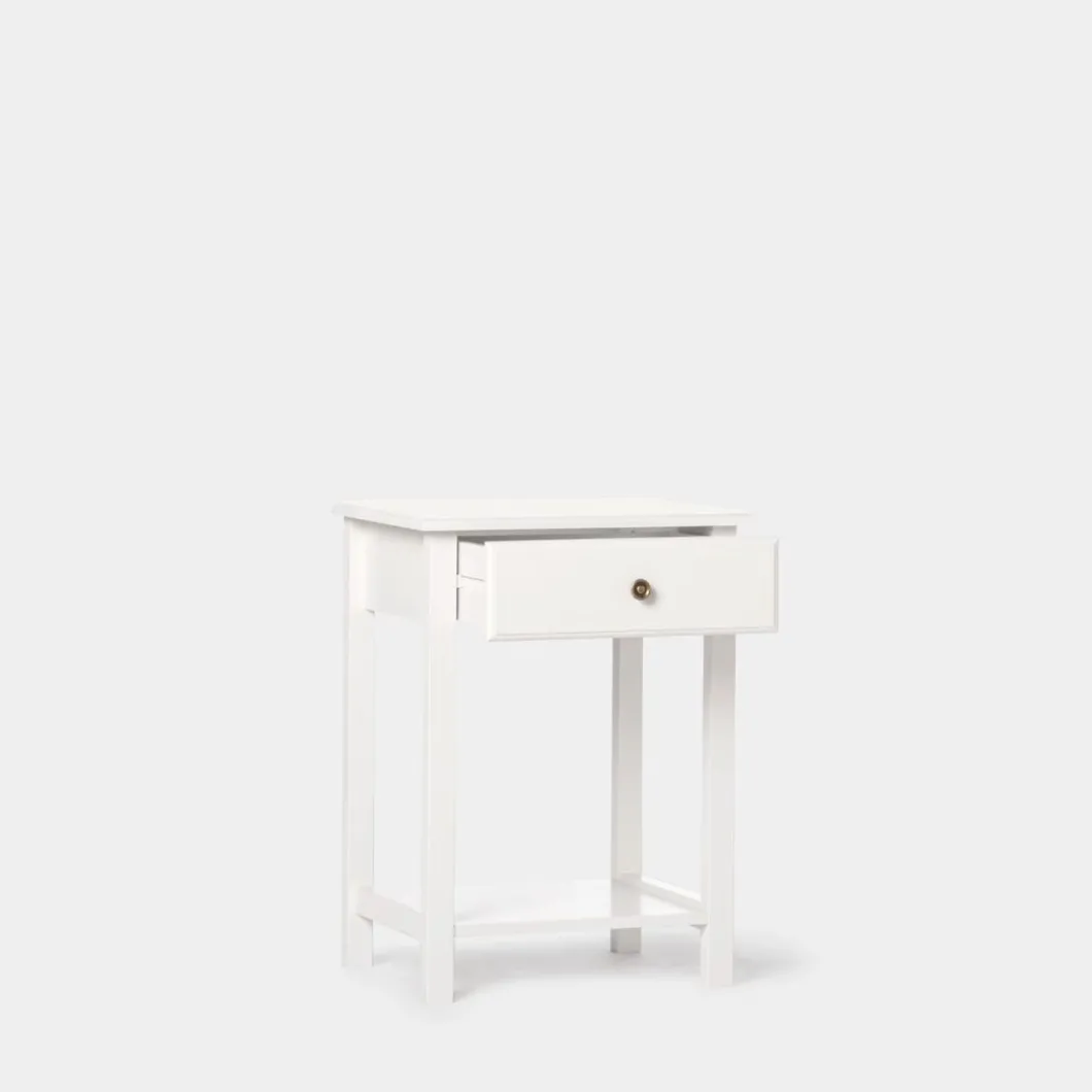 La mesita de noche lacada en blanco de 1 cajón Ruan encajará a la perfección en tu dormitorio. Cuenta con un cajón y un estante inferior que te ayudará a poner orden y contar con algo de almacenamiento extra. Está disponible en varios acabados, escoge el que más encaje con tu estilo.