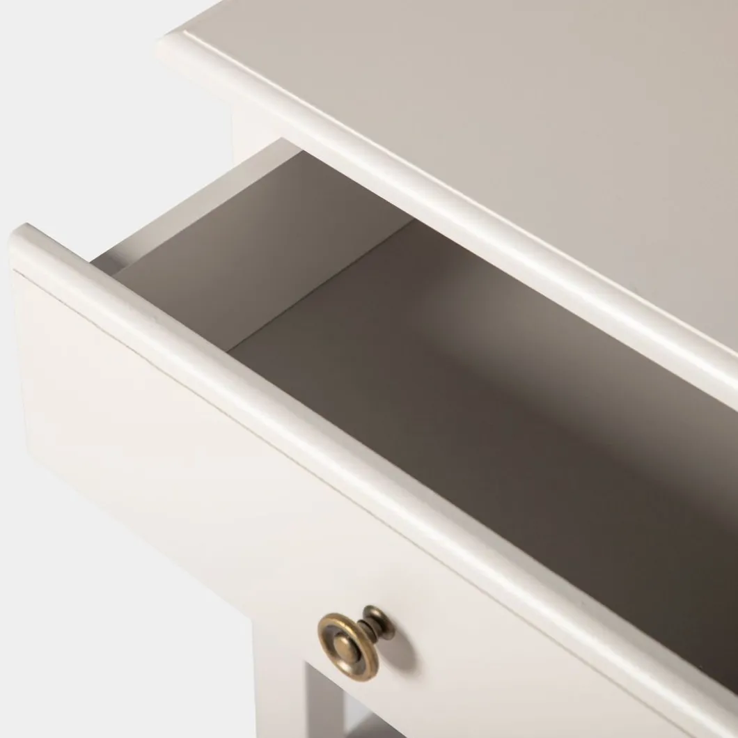 La mesita de noche lacada en gris perla de 1 cajón Ruan encajará a la perfección en tu dormitorio. Cuenta con un cajón y un estante inferior que te ayudará a poner orden y contar con algo de almacenamiento extra. Está disponible en varios acabados, escoge el que más encaje con tu estilo.