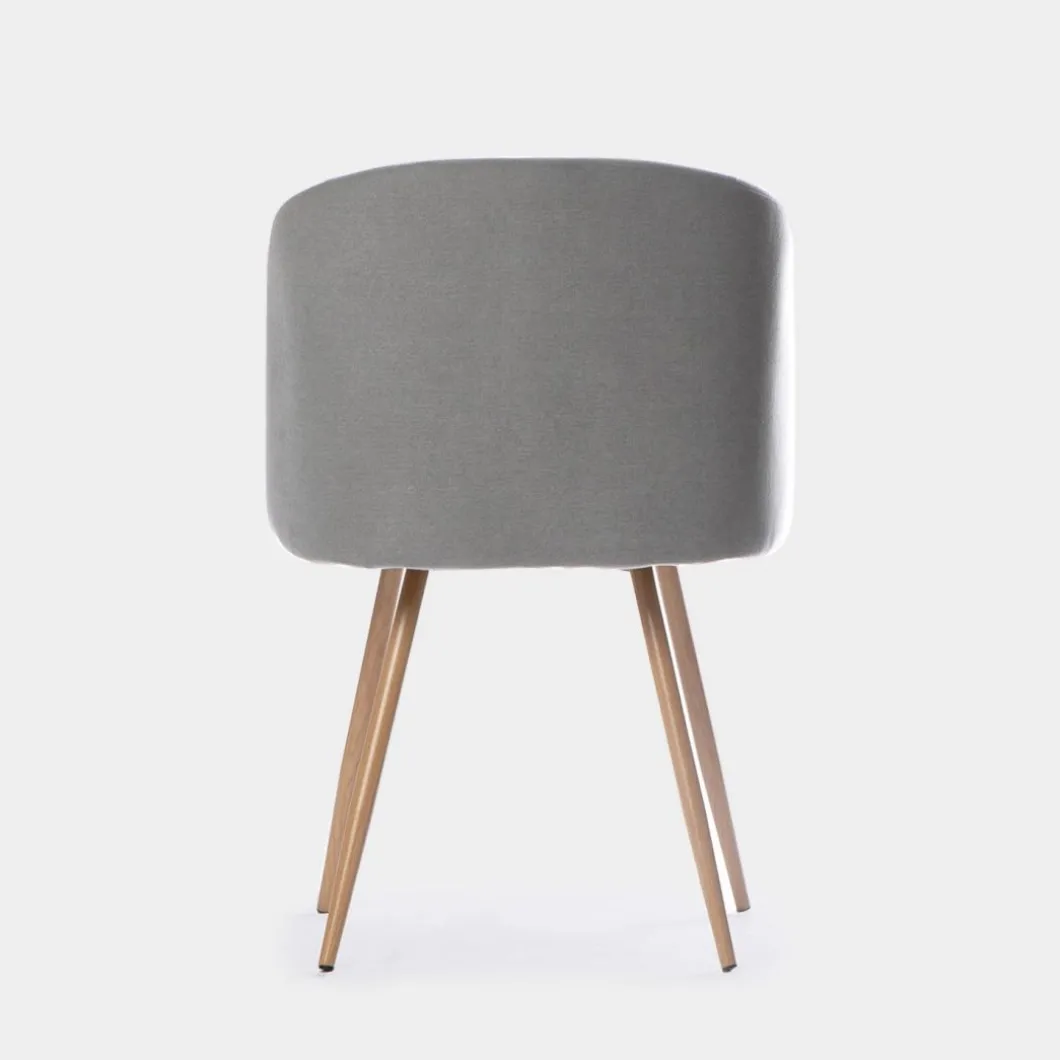 La silla de comedor tapizada Scot con pata metálica efecto madera hará que la decoración de tu hogar destile elegancia por todos sus rincones. Su respaldo ergonómico con tapizado en poliéster está disponible en una preciosa gama de tonalidades que llenará inmediatamente de color tu salón o comedor.