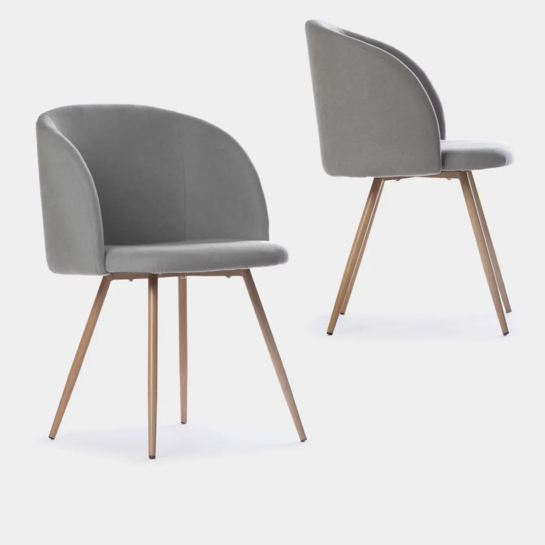 ¡Aprovéchate de este pack! La silla de comedor tapizada Scot con pata metálica efecto madera hará que la decoración de tu hogar destile elegancia por todos sus rincones. Su respaldo ergonómico con tapizado en poliéster está disponible en una preciosa gama de tonalidades que llenará inmediatamente de color tu salón o comedor.