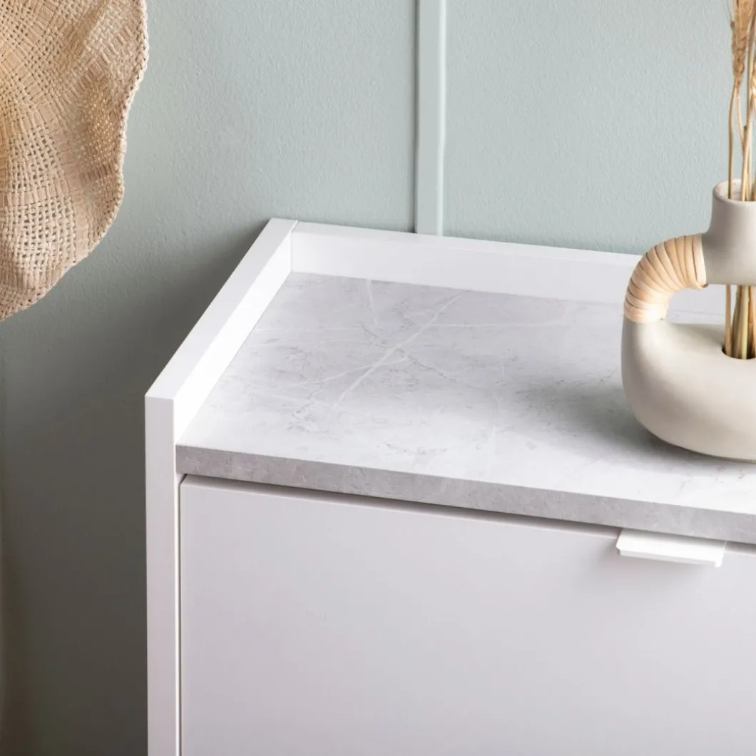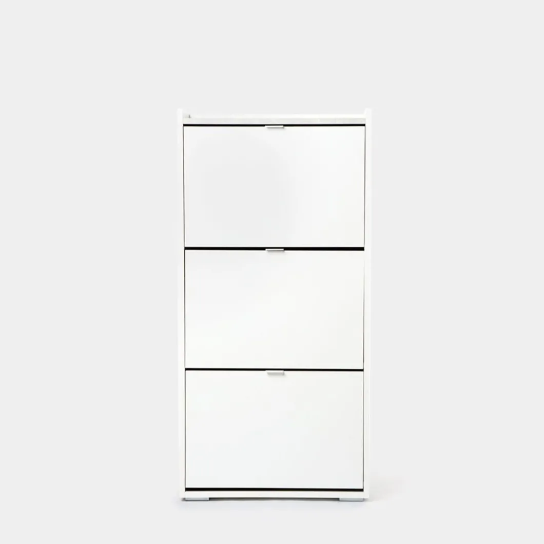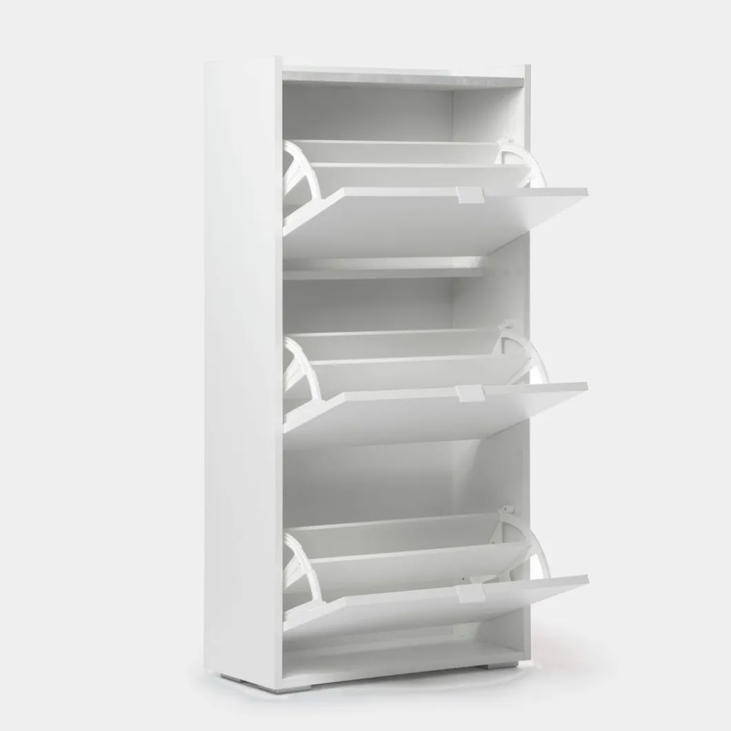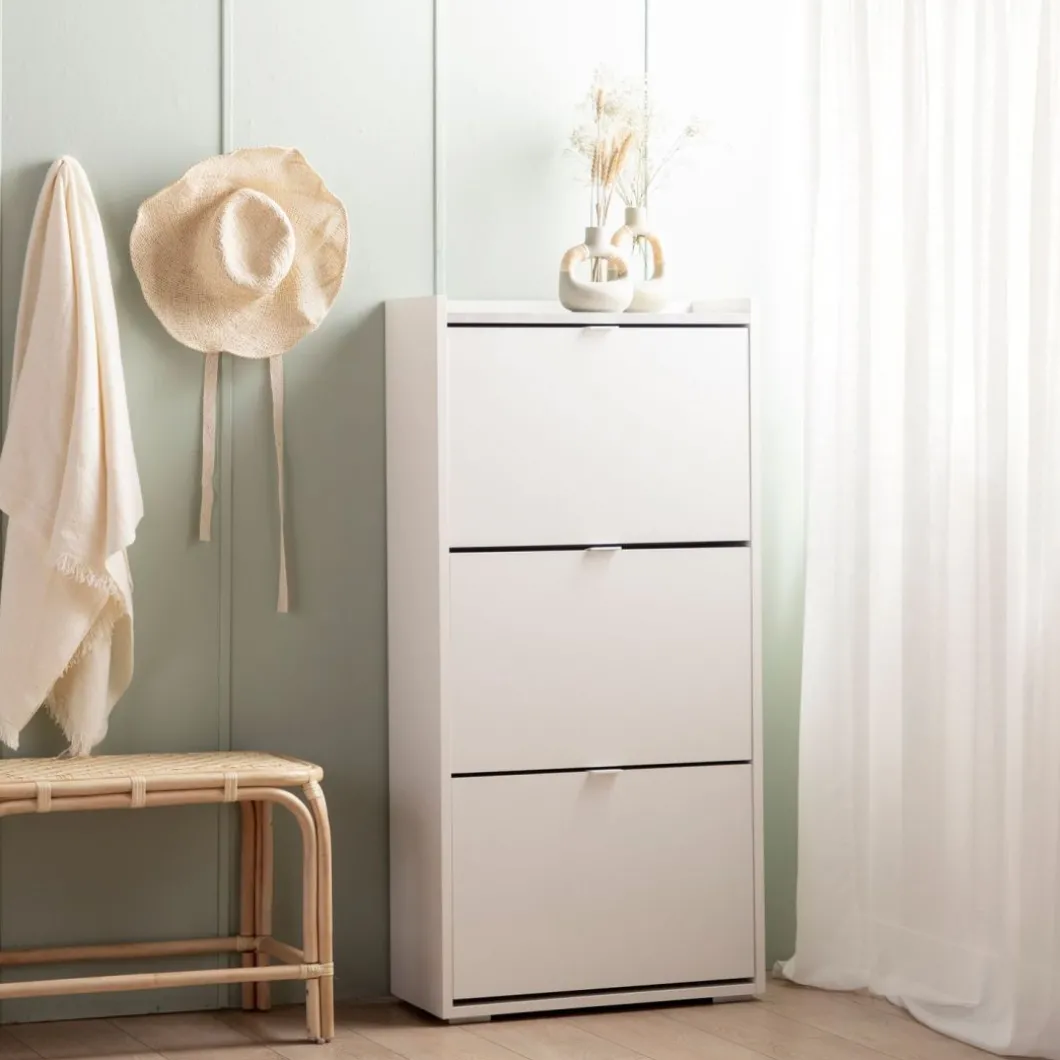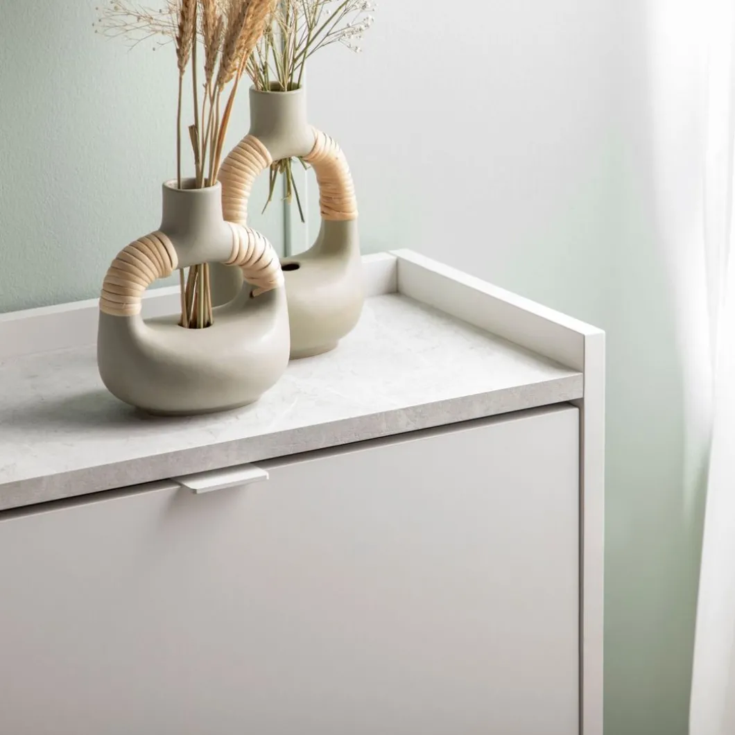 El zapatero estrecho Siena es la elegancia en estado puro. Es una pieza de diseño propio creada por el equipo de Klast Home.De estilo nórdico, con aires daneses, este mueble es el contenedor perfecto para organizar tus zapatos. Dispone de 3 puertas y tiene una capacidad para 12 pares de zapatos. Cada contenedor tiene un separador regulable y/o extraíble para que puedas poner botines o tu calzado de mayor volumen. La talla máxima de zapatos que admite es el número 44, tan solo hay que regular el soporte central de cada estante, cambiando de posición el tornillo.Su tamaño compacto lo hace ideal para zonas de pasillo, recibidores o dormitorios. Cuando hablamos de Siena, hablamos de diseño en mayúsculas, una de sus características más destacable, es su sobre con efecto marmolado, sin duda un detalle que derrocha estilo.Para mayor estabilidad del mueble, aconsejamos su anclaje a la pared.Visita el resto de la colección y completa el look.