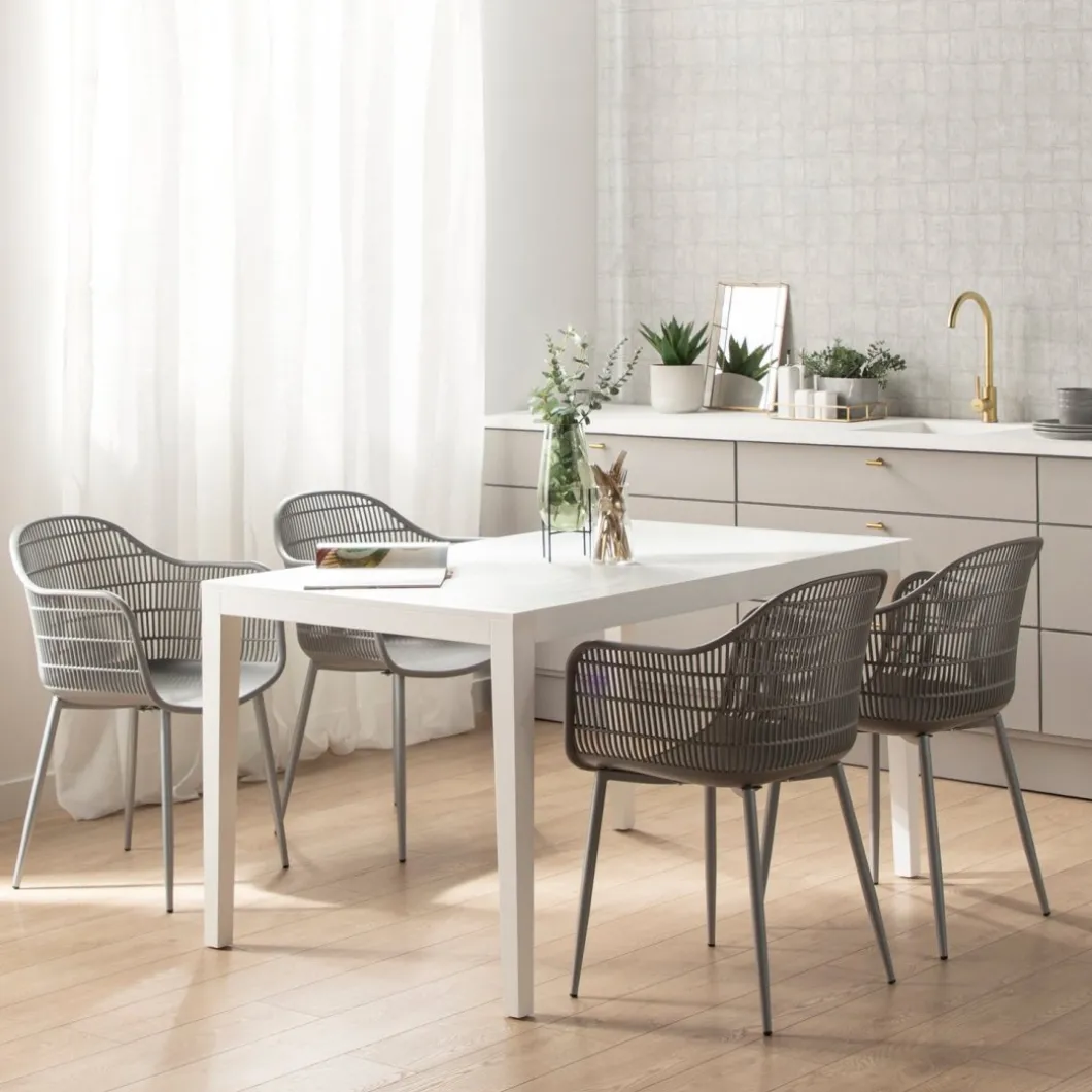 ¡Aprovéchate de este pack! La silla de comedor Soren es una opción perfecta para los que buscan un diseño de tendencia polivalente para interior o exterior. Fabricada en polipropileno con respaldo de rejilla con reposabrazos, esta silla de líneas modernas dará un toque fresco y original allá donde decidas colocarla. ¡Elige entre uno de los 2 colores disponibles y combínala como más te guste! Para mayor durabilidad de la silla, aconsejamos que se evite la exposición de la misma a fenómenos meteorológicos.
