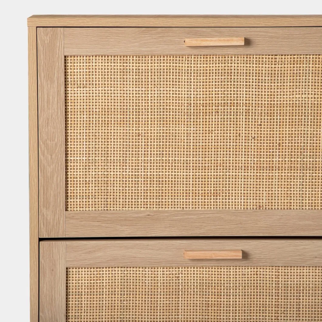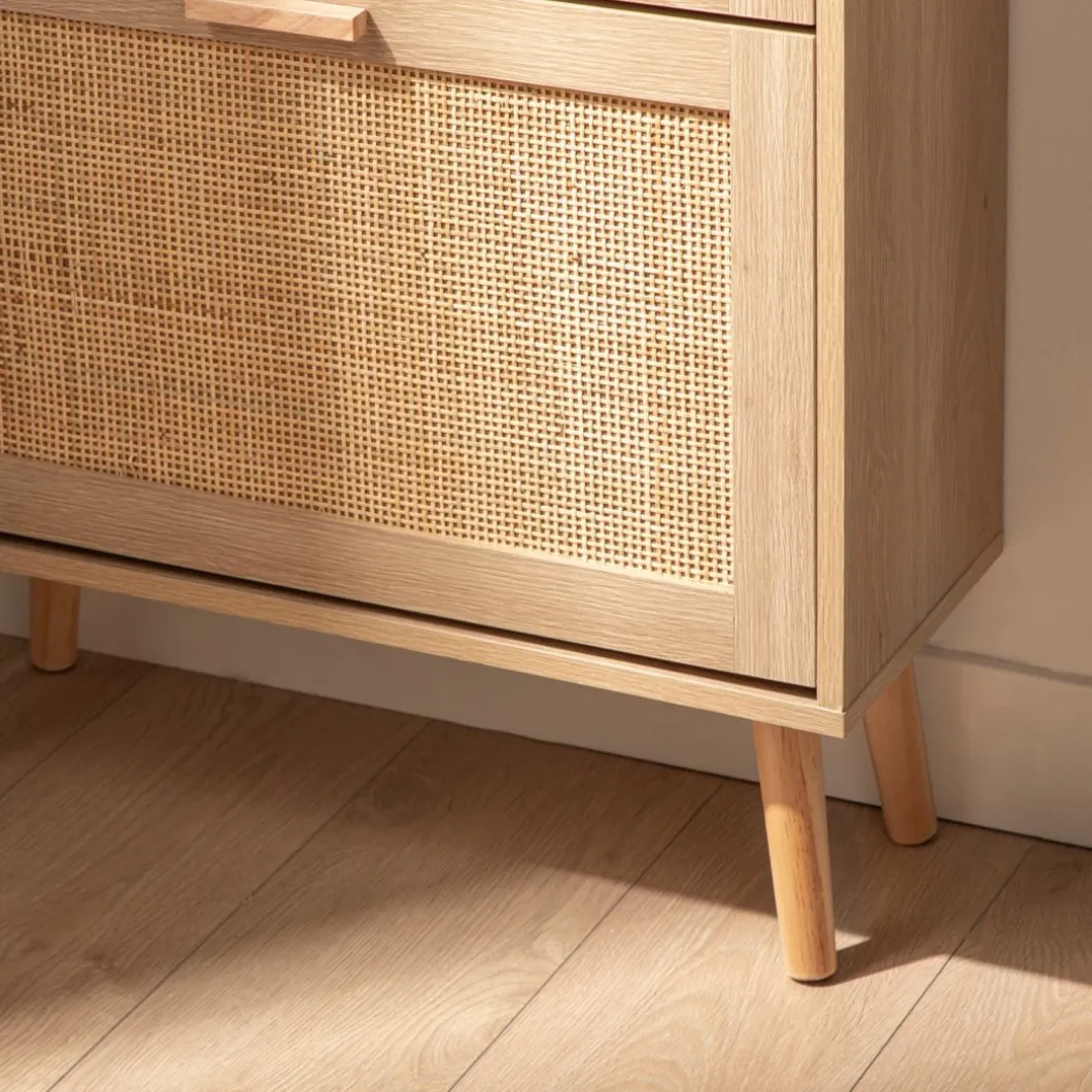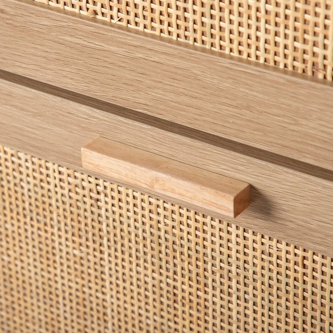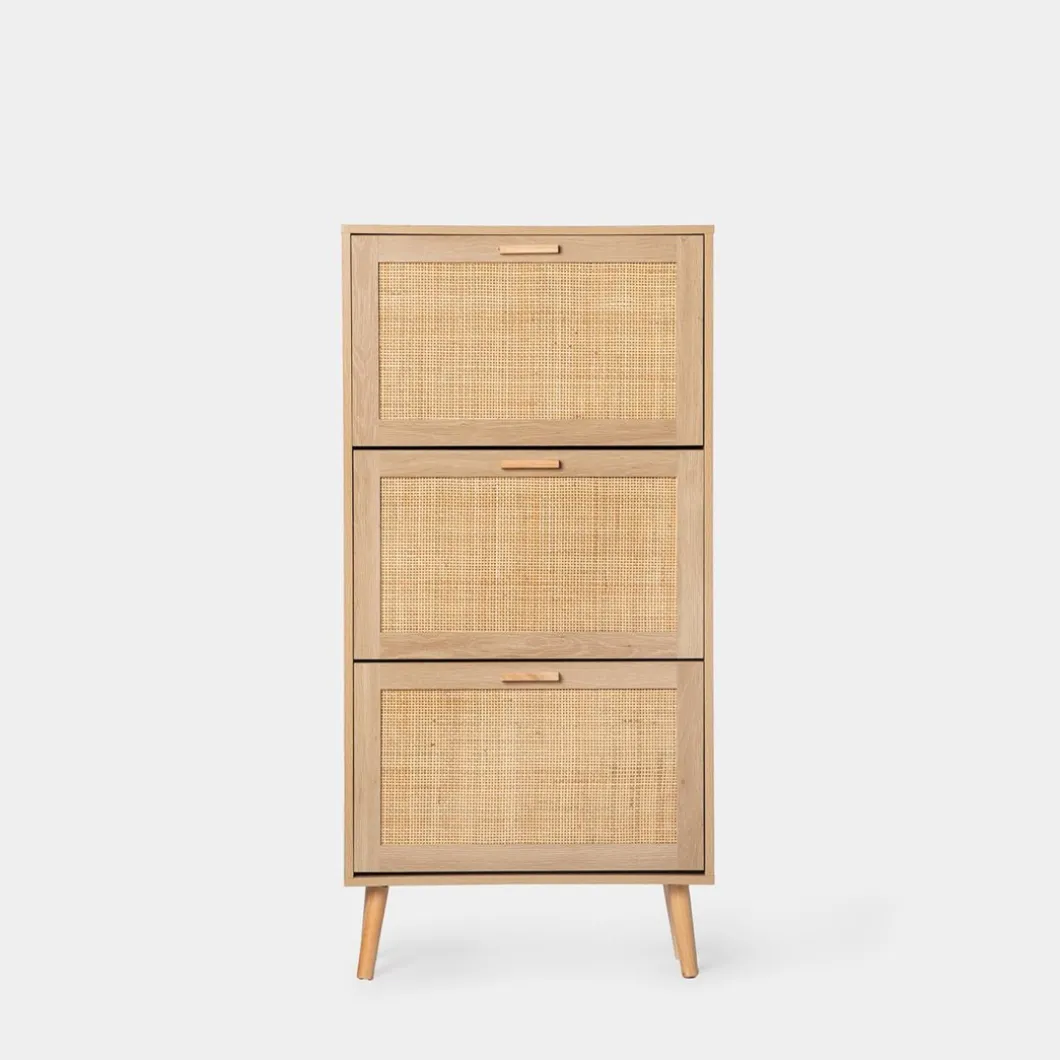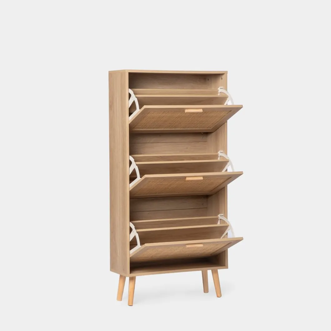 Mantén tus zapatos organizados y accesibles con el zapatero estrecho en ratán natural Tahiti. Sus tres puertas abatibles ofrecen generoso espacio para almacenar hasta 15 pares de zapatos, asegurando que tengas tu calzado favorito siempre a mano. Además, cada contenedor cuenta con un separador extraíble, lo que te permite adaptar el espacio para guardar calzado de mayor volumen con facilidad. Este zapatero fusiona funcionalidad y estilo de forma impecable, convirtiéndose en una pieza indispensable para tu hogar.