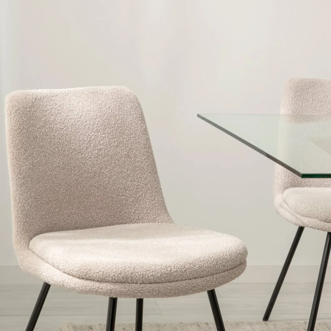 ¡Aprovéchate de este pack! Añade un toque de estilo y confort a tu comedor con la silla de comedor Tera. Su suave tapizado en bouclé gris topo y sus patas metálicas negras ofrecen un equilibrio perfecto entre elegancia y comodidad. Disponible en varios tapizados, elige el que mejor se adapte a tu estilo decorativo.