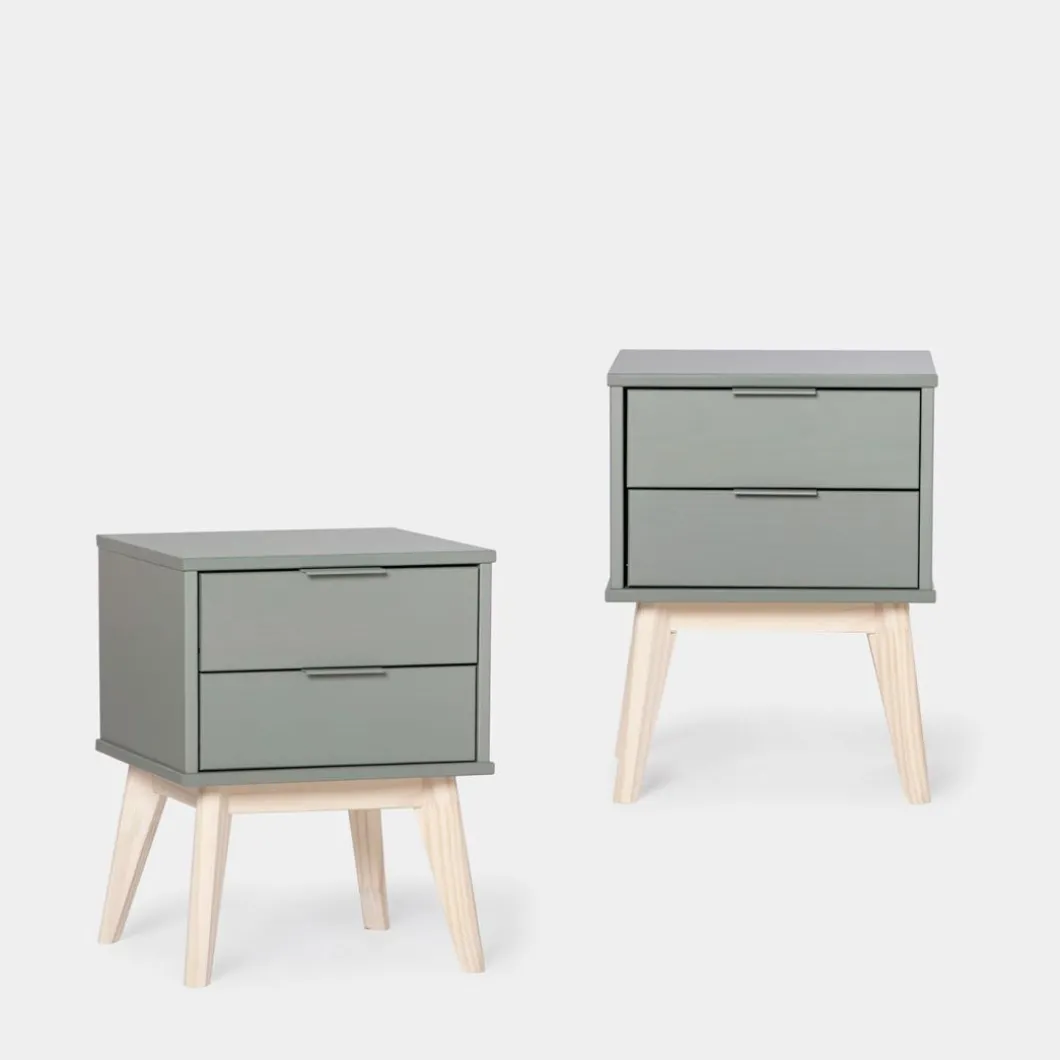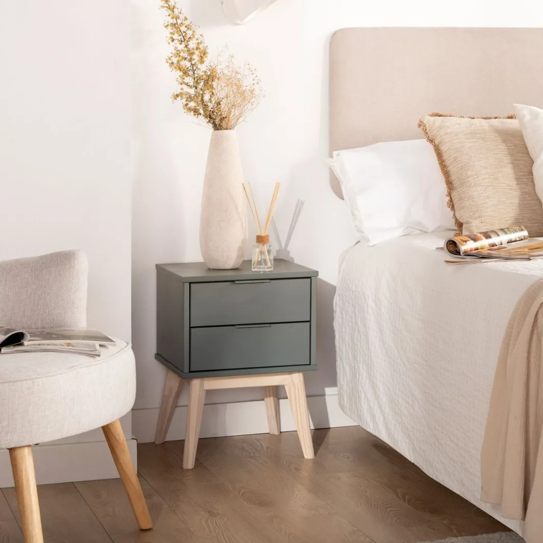 ¡Aprovéchate de este pack de 2 mesitas! La mesita de noche Troy lacada en verde antracita con patas en madera maciza es perfecta para conseguir almacenaje extra y mantener tu dormitorio limpio y ordenado. Gracias a su diseño sencillo y atemporal puede encajar con cualquier estilo decorativo. También está disponible en blanco, escoge el acabado que más te guste.