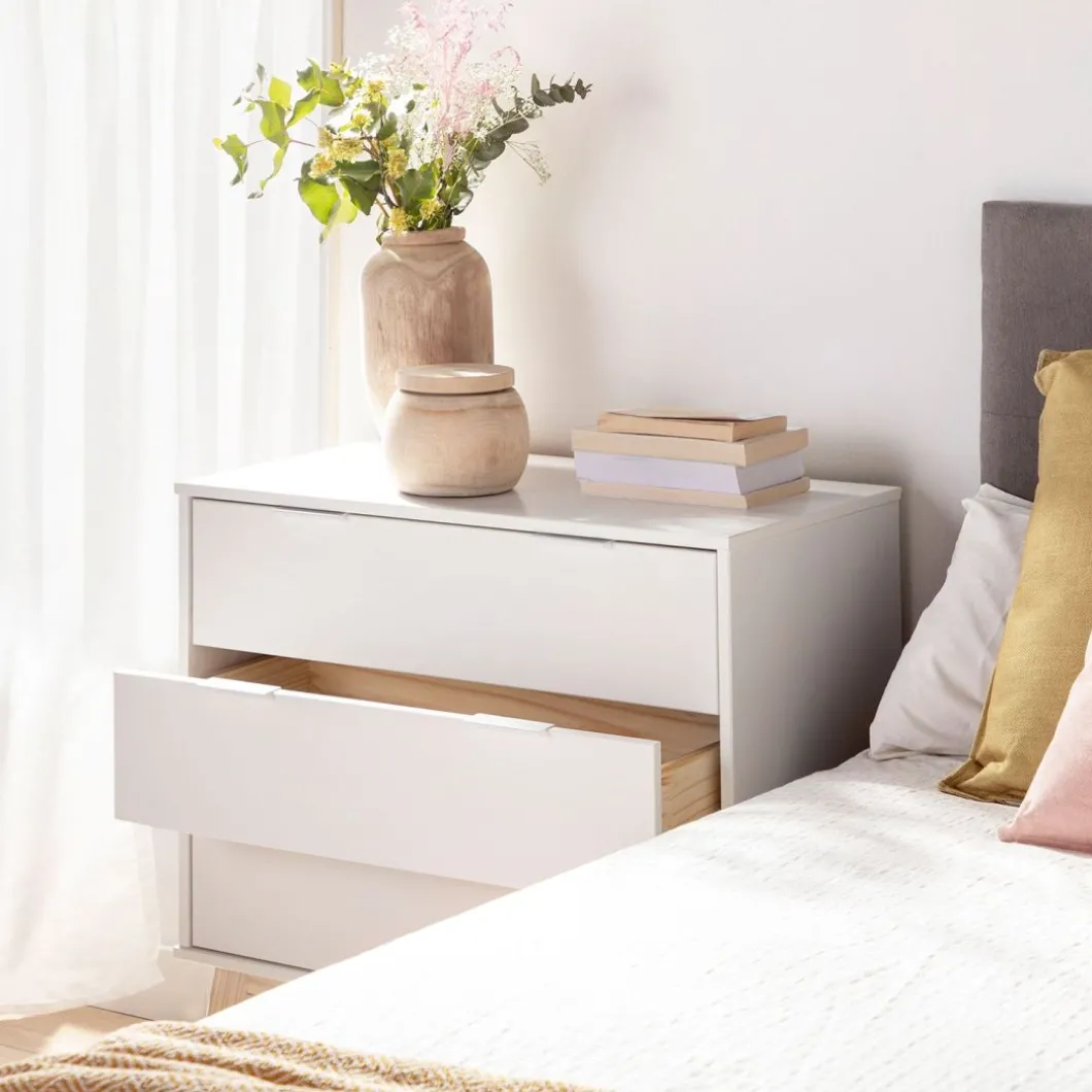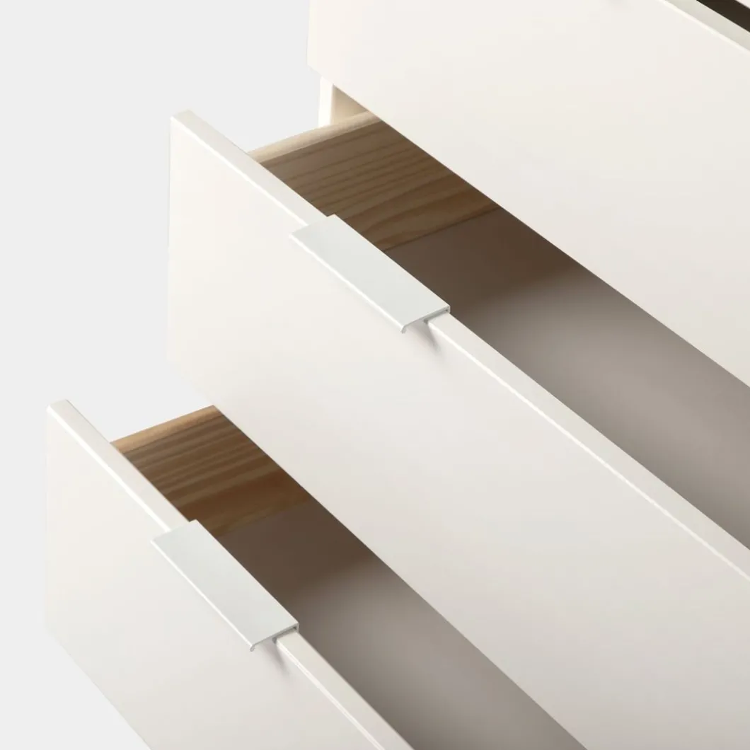 Con la cómoda Troy lacada en blanco conseguirás un extra de almacenaje que te ayudará a mantener el orden en casa. Cuenta con tres cajones de gran capacidad en los que podrás almacenar todo aquello que no necesites tener a la vista. Para mayor estabilidad del mueble, aconsejamos su anclaje a la pared.