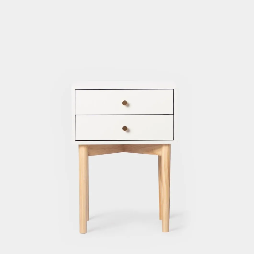 Completa la decoración de tu dormitorio con la mesita de noche blanca de dos cajones Vichy. Gracias a su diseño sencillo y atemporal podrás combinarla fácilmente con cualquier estilo decorativo. Cuenta con un práctico cajón en el que podrás almacenar y organizar diferentes objetos.