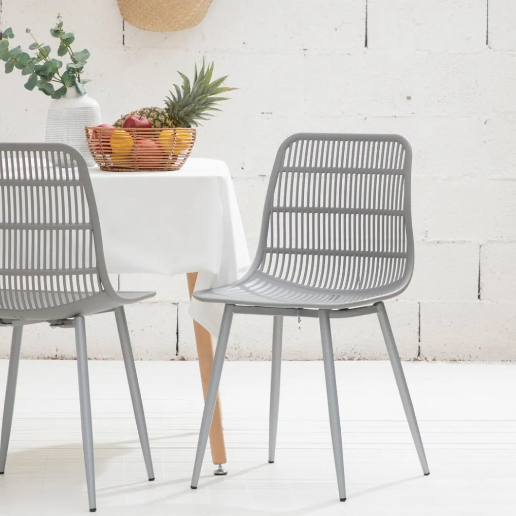 ¡Aprovéchate de este pack! La silla de comedor Zoe es una opción perfecta para los que buscan un diseño de tendencia polivalente ideal para comedor, escritorio o exterior. Fabricada en polipropileno con respaldo de rejilla, esta silla de líneas modernas dará un toque fresco y original allá donde decidas colocarla. ¡Elige entre uno de los 2 colores disponibles y combínala como más te guste! Para mayor durabilidad de la silla, aconsejamos que se evite la exposición de la misma a fenómenos meteorológicos.