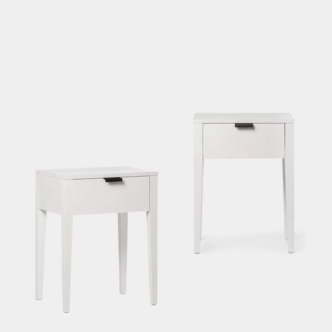 ¡Aprovéchate de este pack! Añade un toque de elegancia y funcionalidad a tu dormitorio con la mesita de noche en chapa de pino y madera de abedul Aima. Su cajón superior te ayudará a organizar y almacenar todos tus objetos personales y mantener el orden en el dormitorio. Disponible en varios acabados, escoge el que mejor encaje con tu estilo.