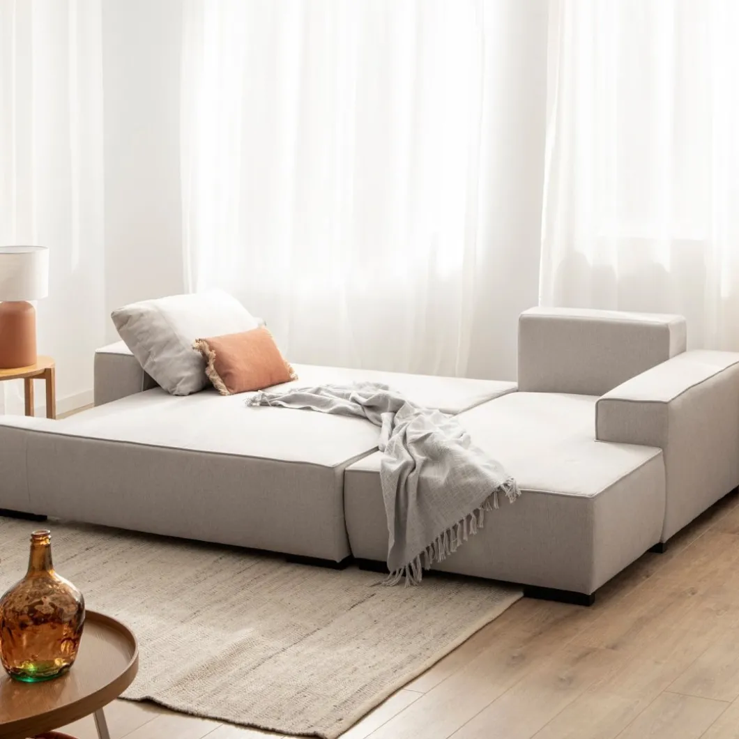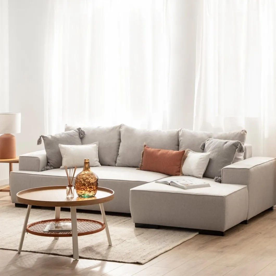 El sofá cama chaise longue derecha de 3 plazas en color gris Alan es la combinación perfecta de estilo y funcionalidad. Este sofá no solo añade un toque de sofisticación a tu salón, sino que también ofrece una versatilidad incomparable gracias a su ingenioso diseño convertible. En un abrir y cerrar de ojos, podrás transformar el cómodo sofá en una cama espaciosa, brindando una solución práctica y acogedora para alojar a tus invitados. La chaise longue, al mirar de frente el sofá, queda ubicada a la derecha.