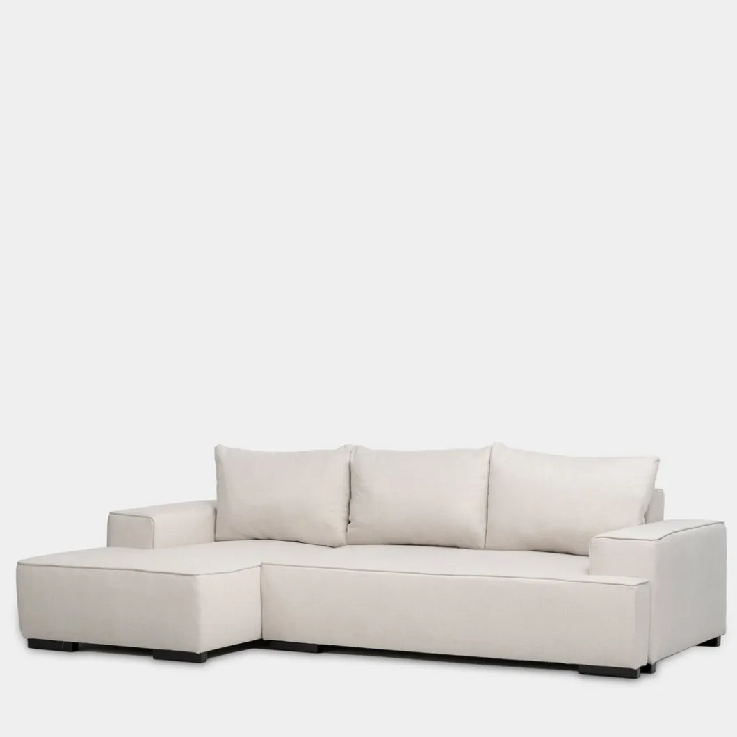 El sofá cama chaise longue izquierda de 3 plazas en color beige Alan es la combinación perfecta de estilo y funcionalidad. Este sofá no solo añade un toque de sofisticación a tu salón, sino que también ofrece una versatilidad incomparable gracias a su ingenioso diseño convertible. En un abrir y cerrar de ojos, podrás transformar el cómodo sofá en una cama espaciosa, brindando una solución práctica y acogedora para alojar a tus invitados. La chaise longue, al mirar de frente el sofá, queda ubicada a la izquierda.
