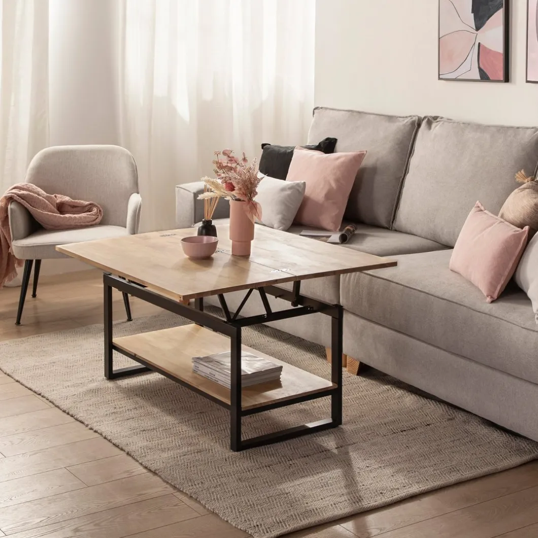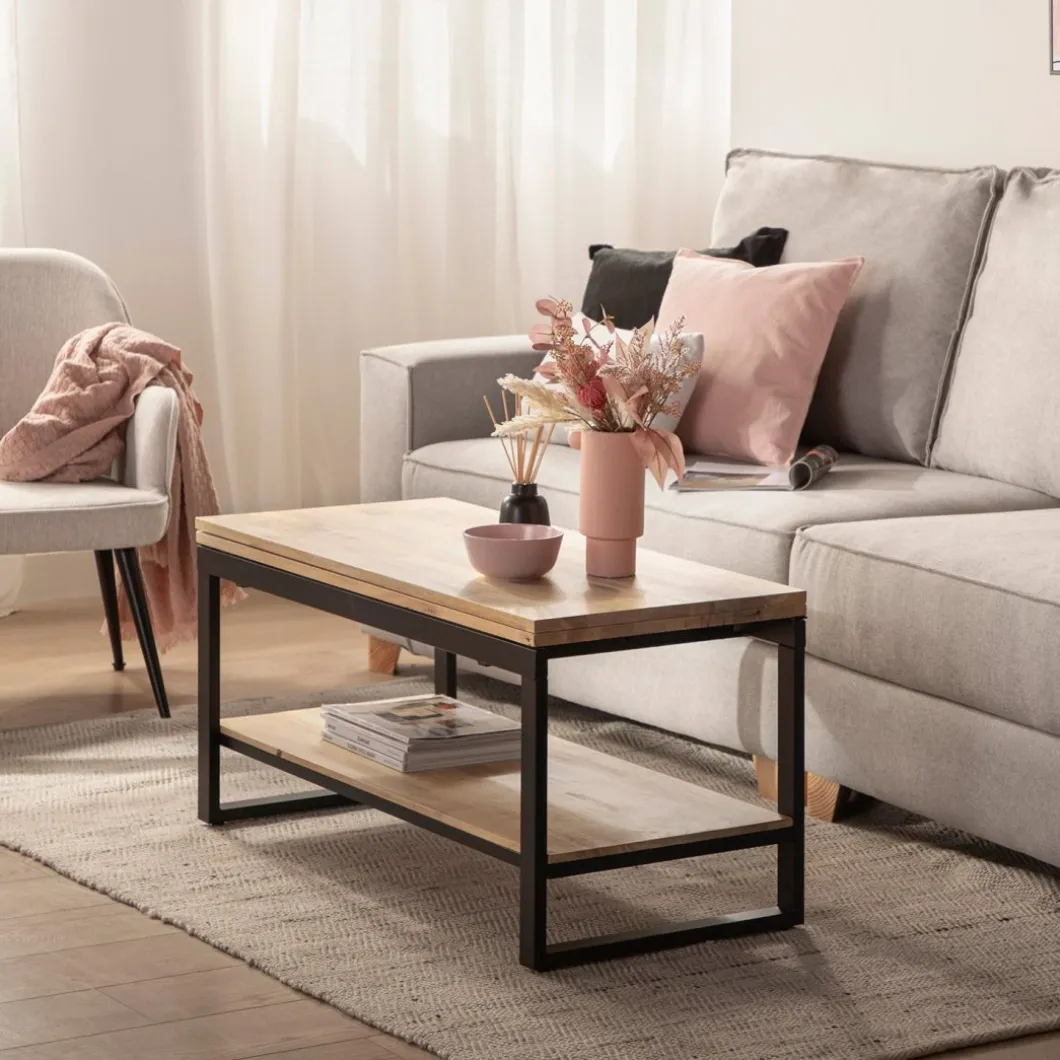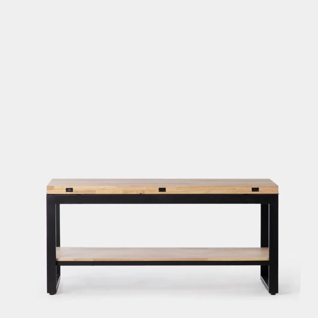 La mesa de centro elevable y extensible Alvi cuenta con 3 posiciones diferentes que permiten aprovechar al máximo el espacio en el salón. Su sobre en madera de roble extensible permite pasar a una superficie útil de 90×100 cm en cuestión de segundos, lo que la hace ideal para comer o trabajar con el ordenador desde el sofá. El sobre de madera de roble puede presentar ligeras variaciones de color respecto al que se muestra en la imagen.