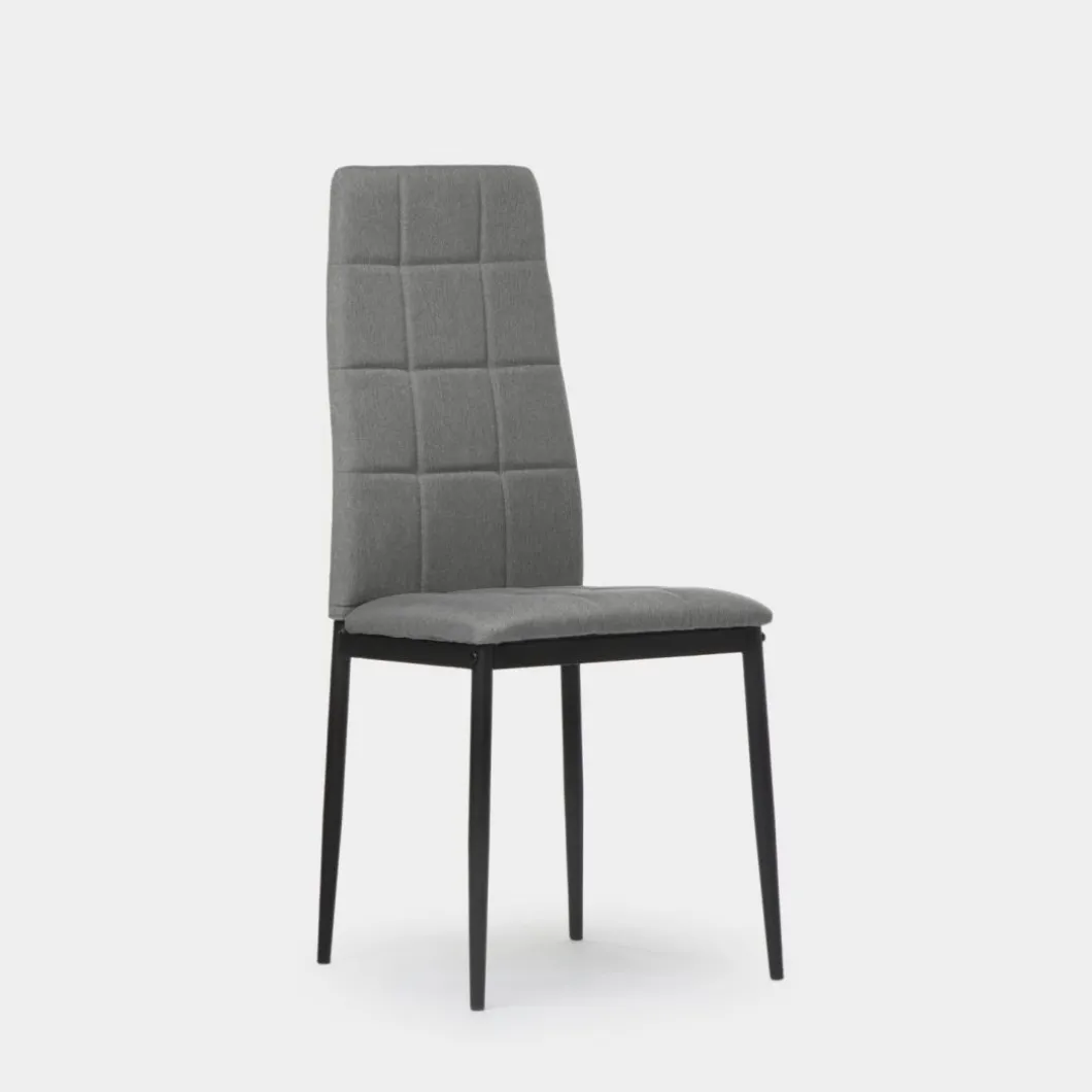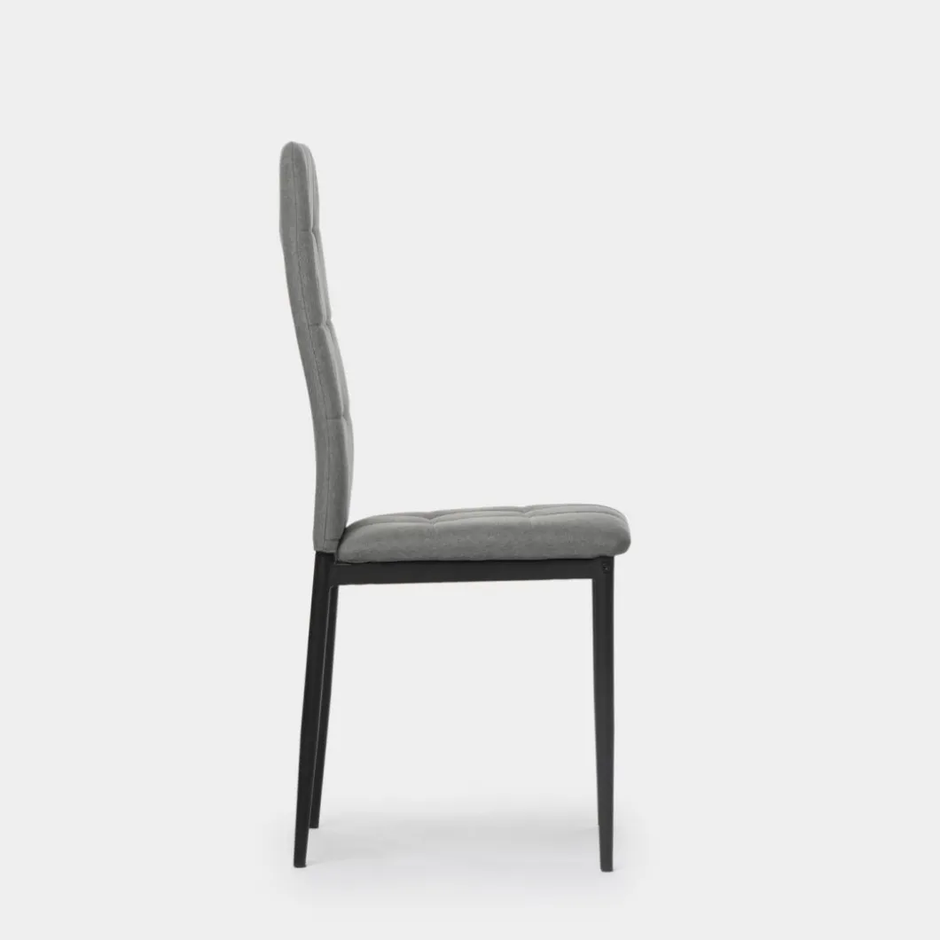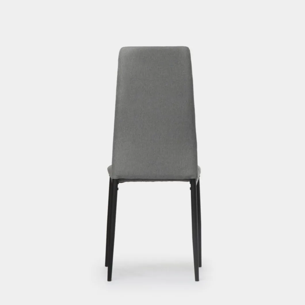 La silla de comedor tapizada Anne con patas metálicas negras se trata de una pieza ideal para los amantes del interiorismo y la decoración más exigentes. Sus diseño con respaldo alto tapizado en poliéster se encuentra disponible en 2 colores, elige entre uno de ellos para aportar un aire moderno a tu comedor.