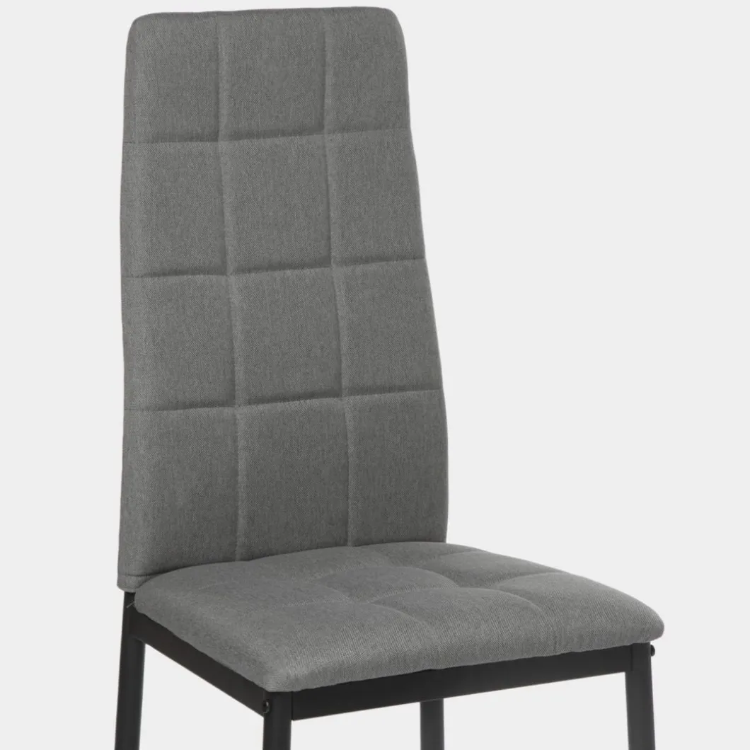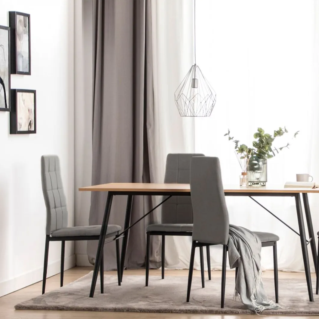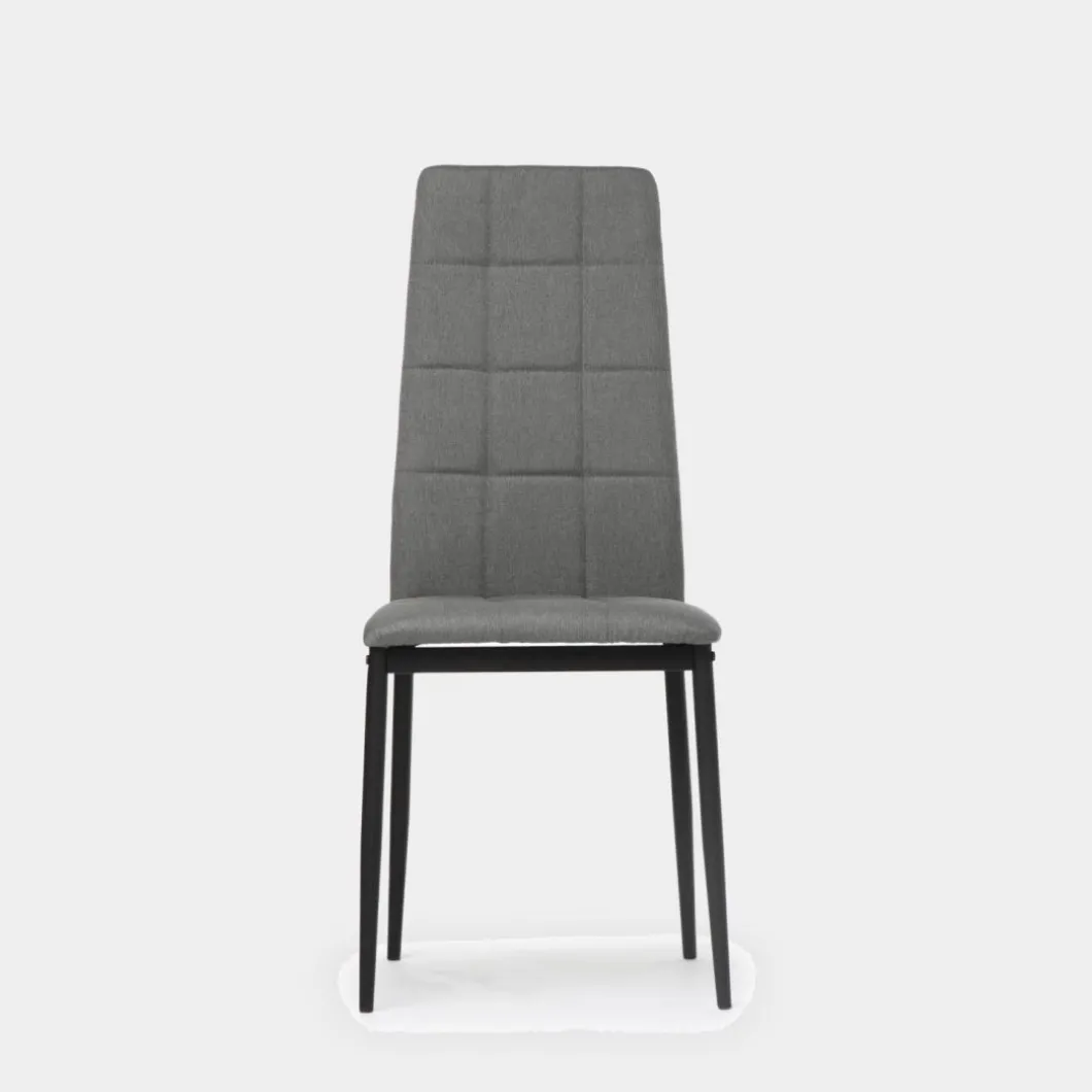 La silla de comedor tapizada Anne con patas metálicas negras se trata de una pieza ideal para los amantes del interiorismo y la decoración más exigentes. Sus diseño con respaldo alto tapizado en poliéster se encuentra disponible en 2 colores, elige entre uno de ellos para aportar un aire moderno a tu comedor.