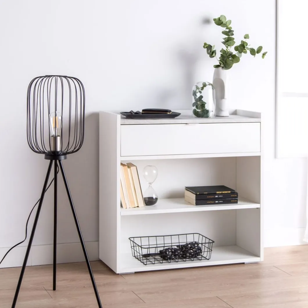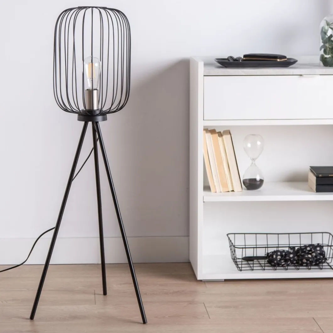 La lámpara de pie Aurora es un iluminaria de estilo industrial con estructura y pantalla en metal negro. Pertenece a una nueva generación de diseños que aportan sofisticación y a la vez elegancia. Su color negro le aporta versatilidad por lo que la puedes colocar en cualquier rincón de tu hogar.No incluye bombilla.