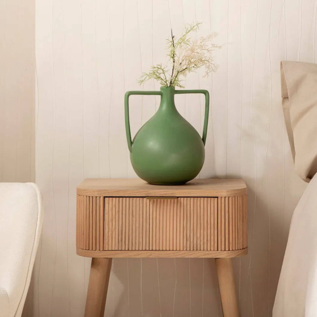 Este encantador jarrón de gres en color verde es una pieza única que aporta un toque de elegancia rústica a cualquier espacio. Su diseño en forma de jarra, con dos asas funcionales, evoca una estética tradicional y atemporal. El acabado esmaltado en verde profundo destaca por su vibrante color y su suave brillo, mientras que las asas proporcionan un detalle distintivo y práctico. Perfecto para exhibir flores frescas o ramas decorativas, este jarrón es un complemento versátil que realza tanto interiores modernos como clásicos.