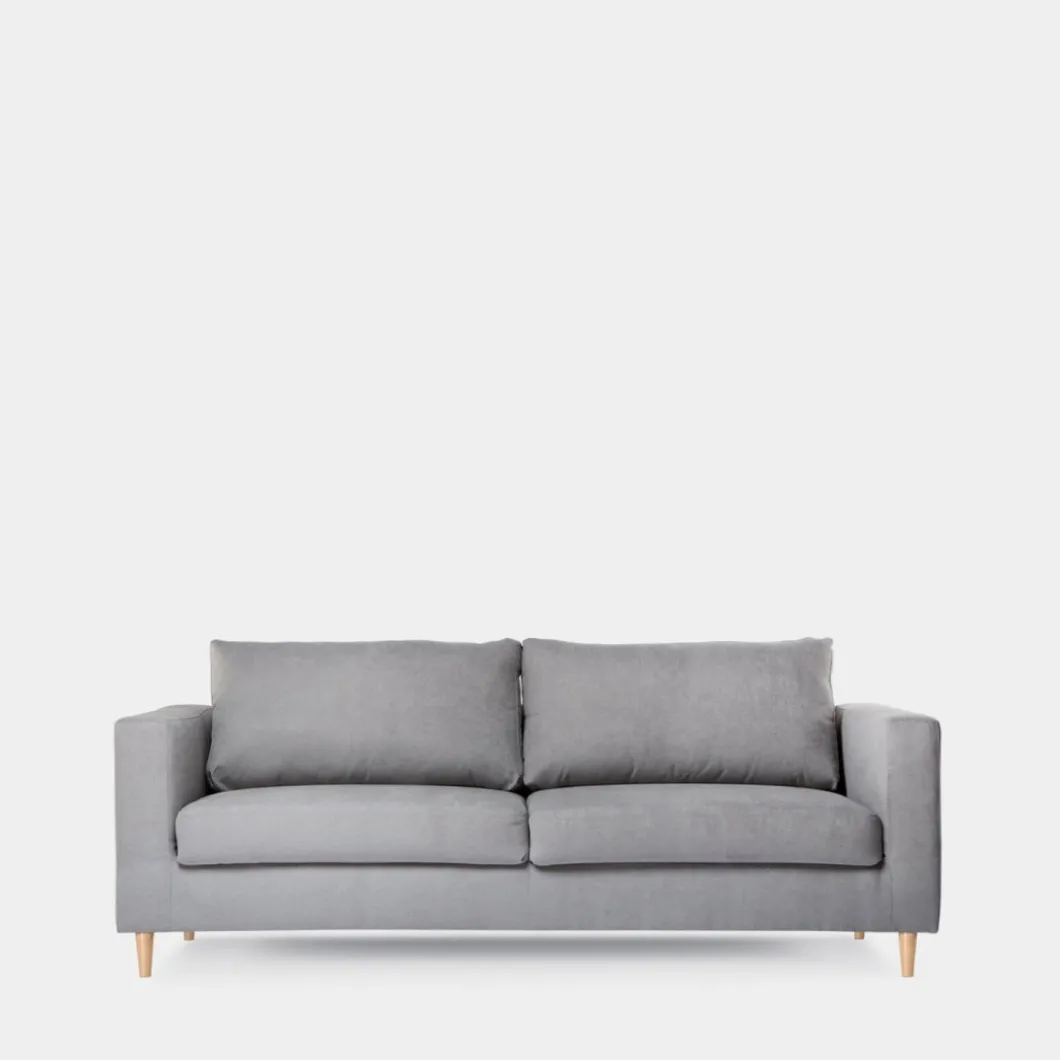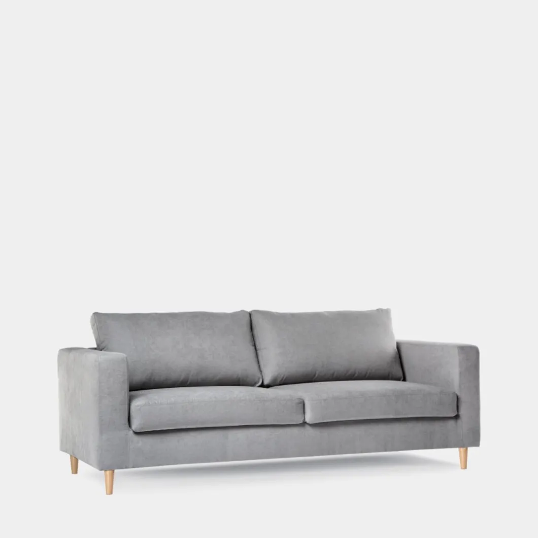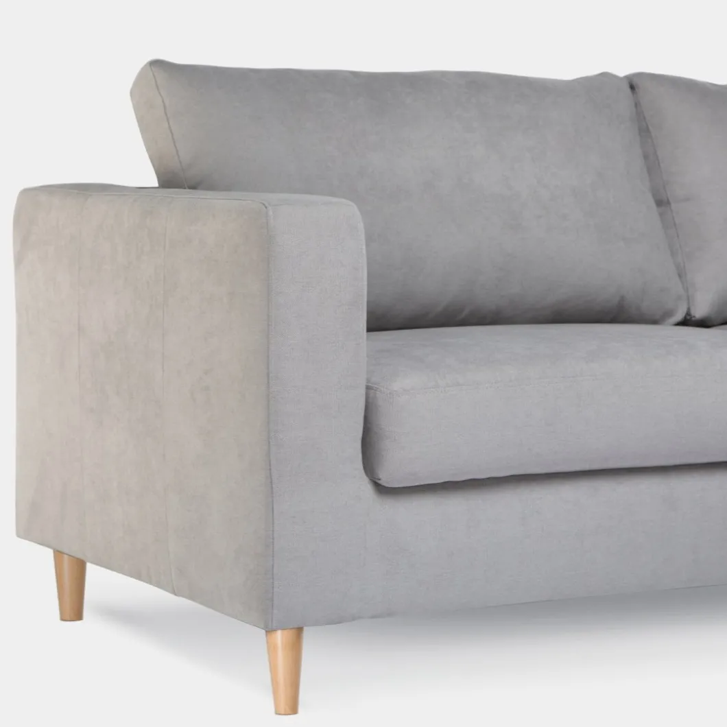 El sofá tres plazas Beth en color gris es cómodo y estiloso. Su patita en madera despuntada proporcionará un look nórdico a tu salón. Lo encontrarás también disponible en color beige.