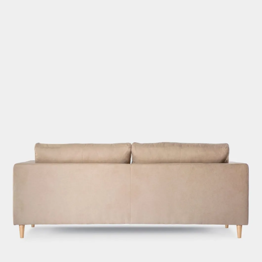 El sofá tres plazas Beth en color beige es cómodo y estiloso. Su patita en madera despuntada proporcionará un look nórdico a tu salón. Lo encontrarás también disponible en color gris. El sofá incluye 2 juegos de patas, en color madera claro y oscuro.