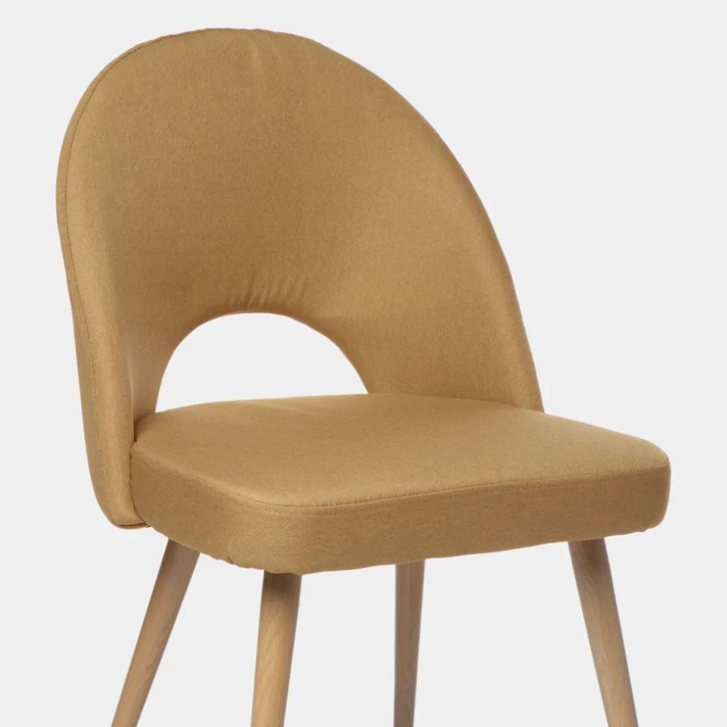 La silla de comedor tapizada Blair es una preciosa silla con respaldo ergonómico y apertura central fabricado en poliéster, lo que le aporta una sentada realmente confortable. Sus patas metálicas en efecto madera hacen de esta silla es una opción que encandilará a los amantes del diseño nórdico más actual. Elige entre los 4 colores disponibles en nuestra web y para darle un toque elegante a tu comedor.