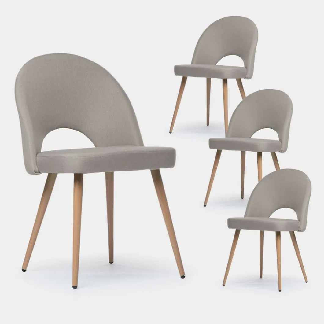 ¡Aprovéchate de este pack de sillas! La silla de comedor tapizada Blair es una preciosa silla con respaldo ergonómico y apertura central fabricado en poliéster, lo que le aporta una sentada realmente confortable. Sus patas metálicas en efecto madera hacen de esta silla es una opción que encandilará a los amantes del diseño nórdico más actual. Elige entre los 4 colores disponibles en nuestra web y para darle un toque elegante a tu comedor.