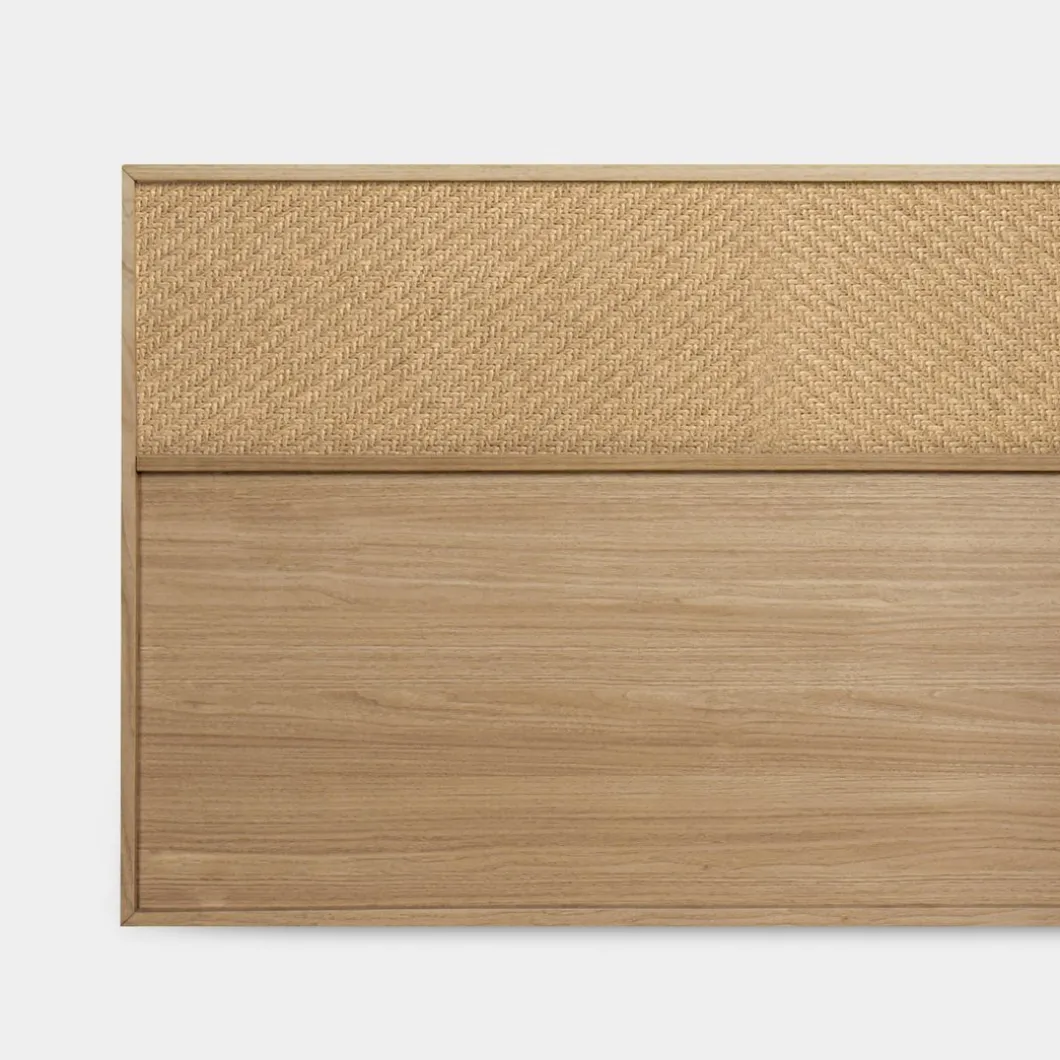 Aporta calidez y estilo a tu dormitorio con el cabecero en madera color natural y fibra natural Bora. Se puede utilizar en camas de 135, 150 y 160. Requiere anclaje a pared. La tornillería no está incluida. Combínalo con los muebles de la misma colección y consigue un dormitorio lleno de encanto.