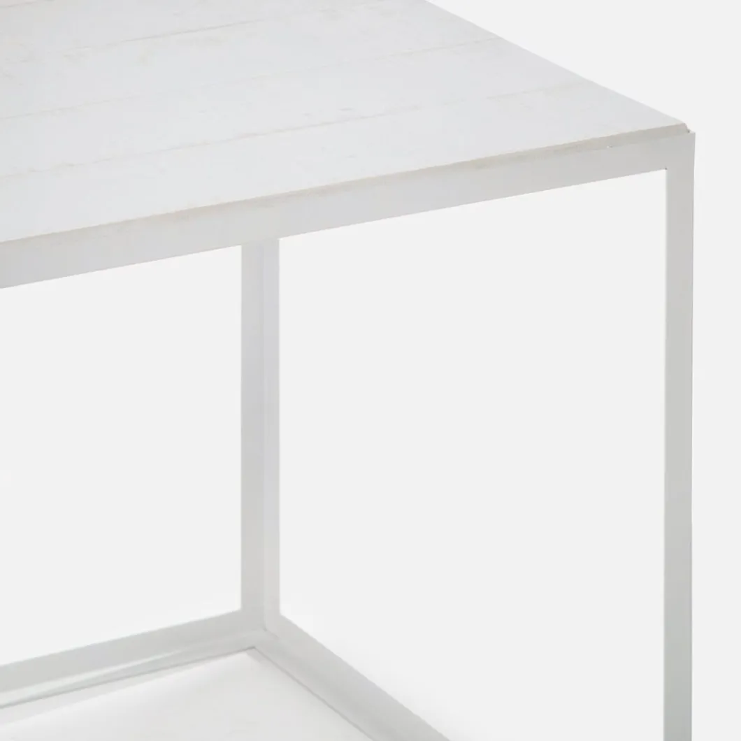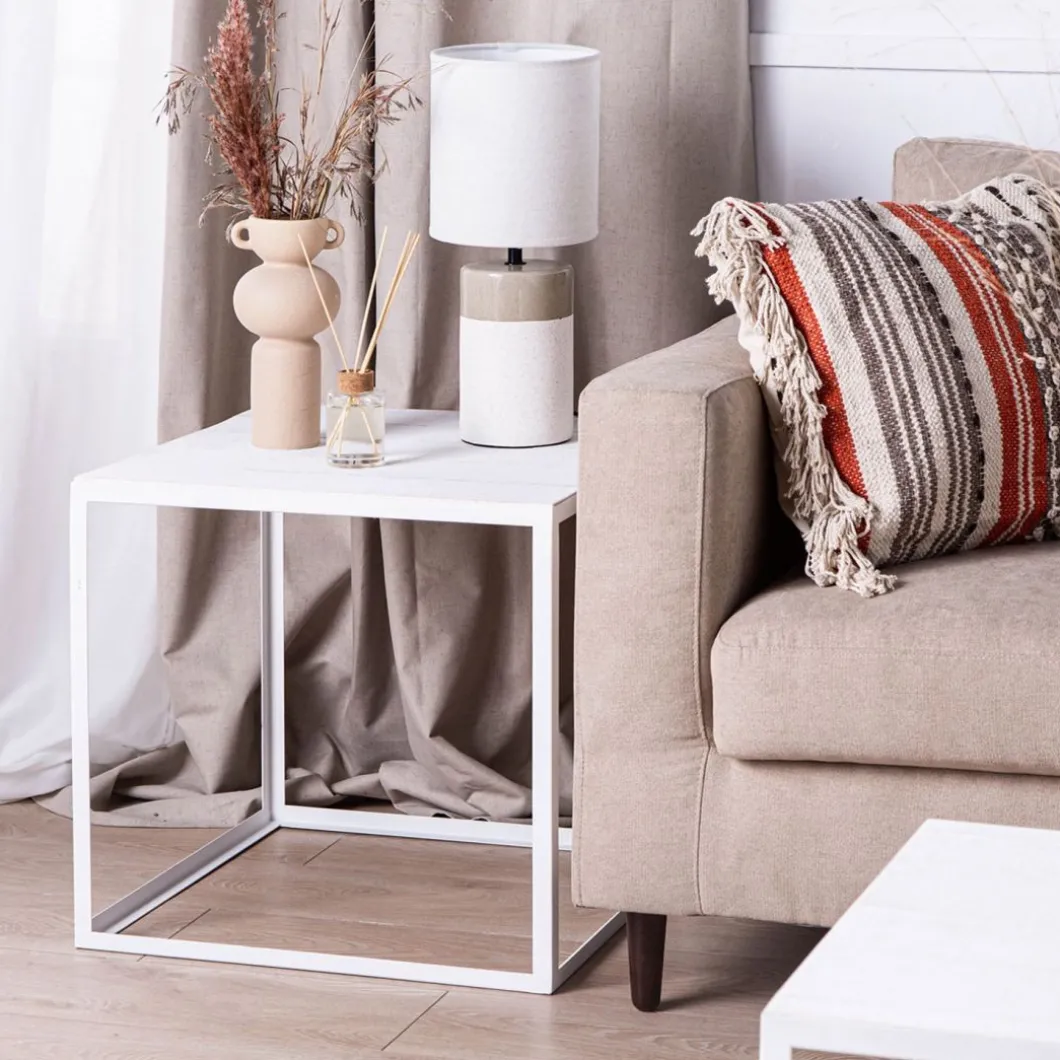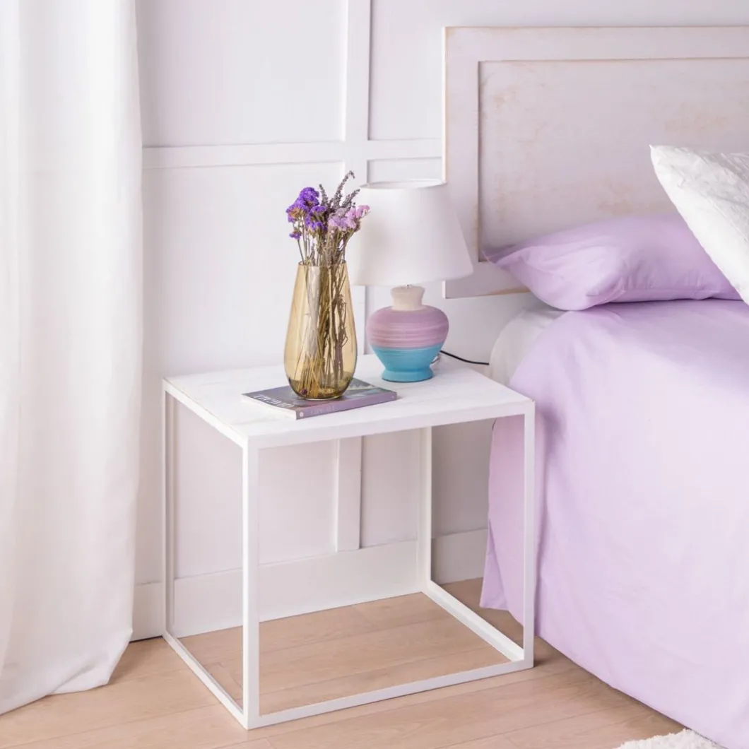 La mesa auxiliar Brena es la mejor opción para tu sala de estar si el estilo que te gusta es el industrial. Su madera blanqueada en el sobre y su estructura metálica blanca la hacen muy versátil a nivel decorativo ya que también combina muy bien con la decoración natural. Es una pieza multifuncional, ya que la puedes colocar también como mesita de noche en el dormitorio. Es un diseño propio crado por el equipo de Klast Home, sostenible, que se convertirá en el protagonista de tu sala de estar.