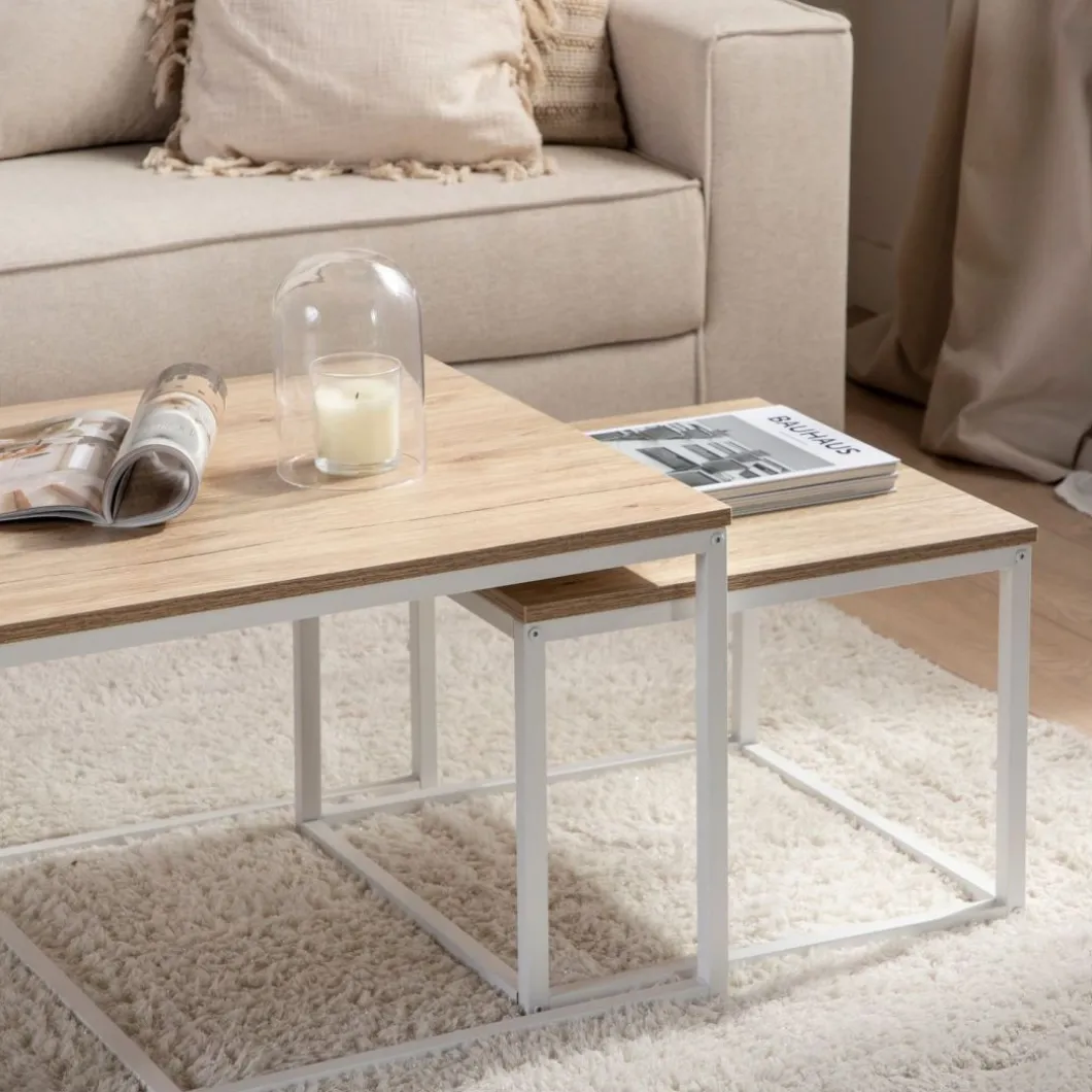 El set de 3 mesas de centro Casablanca es la mejor opción para tu sala de estar si el estilo que te gusta es el industrial. Su madera en el sobre y su estructura metálica la hacen muy versátil a nivel decorativo ya que también combina muy bien con la decoración contemporánea y vintage. Puedes poner las 3 mesas juntas, o usar las más bajas como auxiliares junto a butacas o sofá… crea la composición que más te guste.