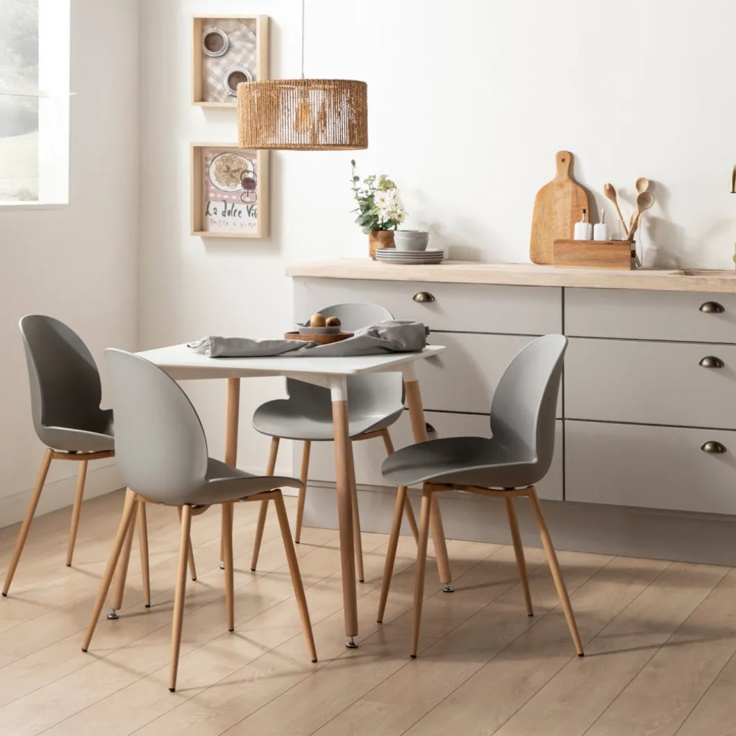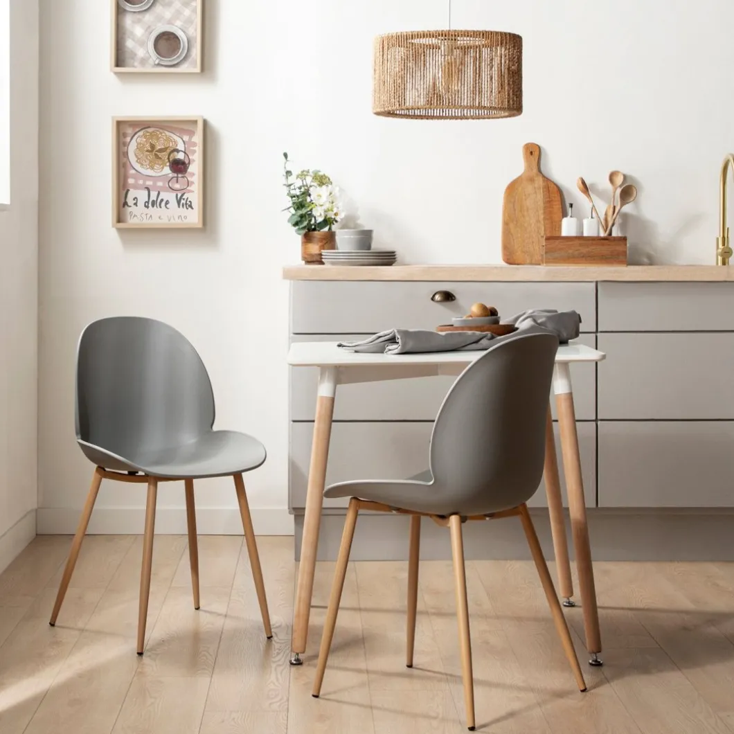 La silla de comedor Ceilan con pata metálica efecto madera es uno de los diseños más originales y polivalentes de nuestro catálogo. Debido a su respaldo fabricado en polipropileno, se trata de una opción perfecta para tu escritorio, o incluso como silla de exterior. Está disponible en una gama de colores que enamorará a los amantes del diseño nórdico. Para mayor durabilidad de la silla, aconsejamos que se evite la exposición de la misma a fenómenos meteorológicos.