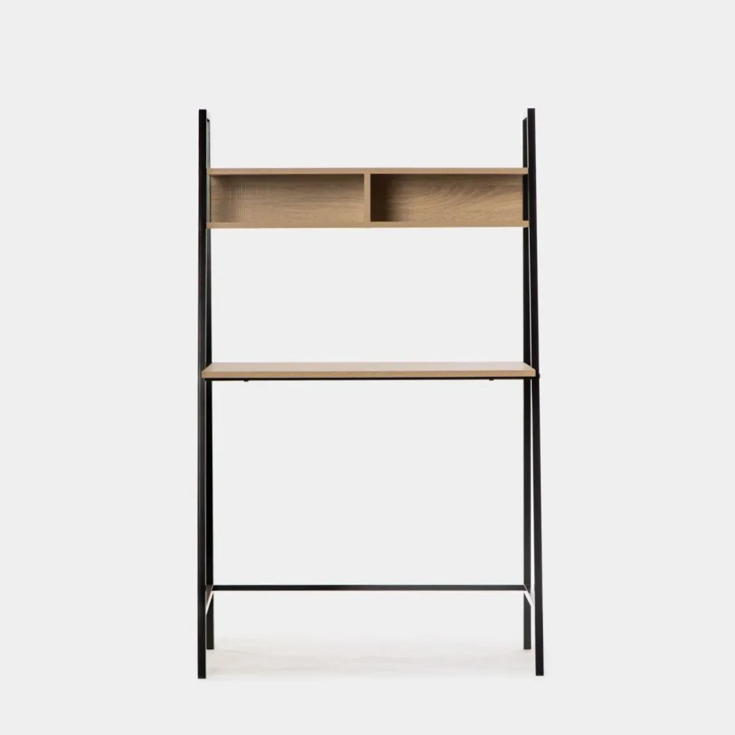 Apuesta por el escritorio Clerk en acabado natural y estructura negra. Su estante superior lo hace muy funcional y estético. Te permite almacenar de una forma ordenada aquello que necesites o incluso poner accesorios decorativos para darle el toque deco que necesitas. Con inspiración industrial esta mesa de estudio y/o trabajo será la pieza que necesitas en tu oficina o dormitorio.