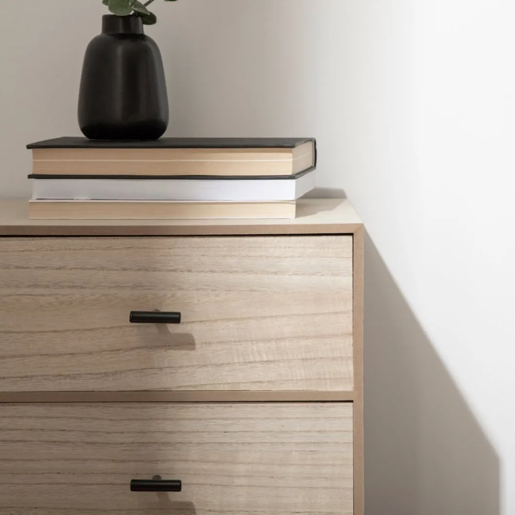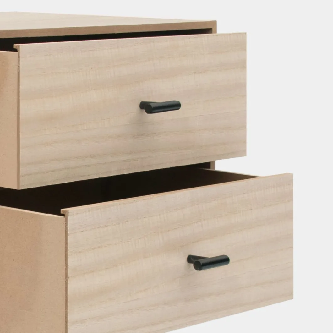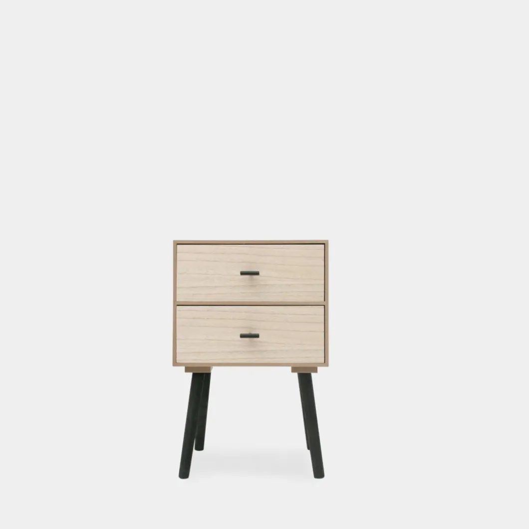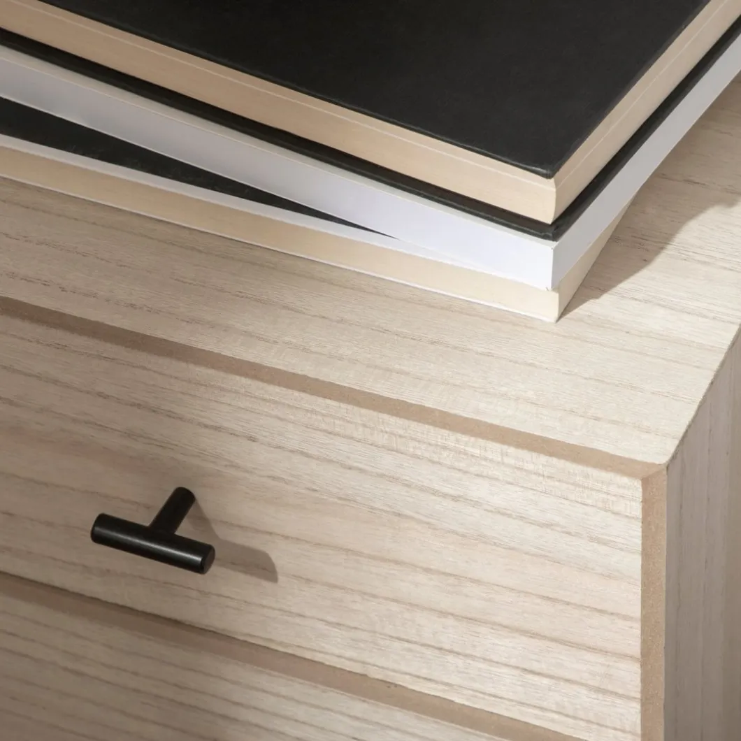 ¡Aprovéchate de este pack! Añade un toque distintivo y moderno a tu dormitorio con la mesita de noche de 2 cajones Dora, fabricada en chapa de paulownia. Sus dos cajones proporcionan un almacenamiento generoso, ideal para mantener tus objetos personales organizados y siempre a mano.