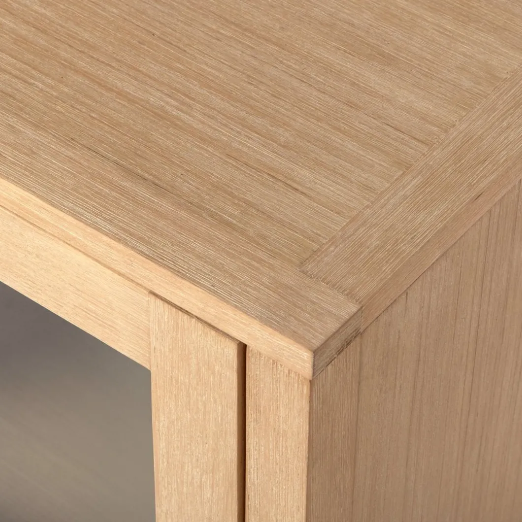 Aporta un toque elegante y sifisticado a tu salón con el mueble TV de 140 en chapa de pino y madera de abedul Edan. Cuenta con dos puertas de cristal y dos estantes en los que podrás exhibir o almacenar todos tus accesorios multimedia y mantener el orden en tu hogar. También está disponible en otros acabados, escoge el que más te guste.