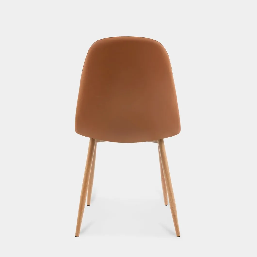 La silla de comedor Elia, tapizada en sofisticada polipiel terracota y con patas metálicas efecto madera, es la elección perfecta para completar tu hogar. Su diseño sencillo y minimalista aporta un toque de elegancia a cualquier espacio. Gracias a su ergonomía, es ideal tanto para el comedor como para el escritorio, garantizando comodidad y estilo. Disponible en una variedad de tapizados, escoge el que mejor encaje con tu estilo.