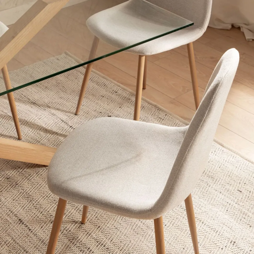 ¡Aprovéchate de este pack! La silla de comedor tapizada Ellis con pata metálica efecto madera se convertirá en la protagonista de tu comedor gracias a su exclusivo y elegante diseño. Disfruta de esta polivalente silla de diseño ergonómico en donde más la necesites, ya sea como silla de comedor o también como silla de escritorio. Sus diferentes tapizados te dan la posibilidad de combinarla con diferentes estilos.