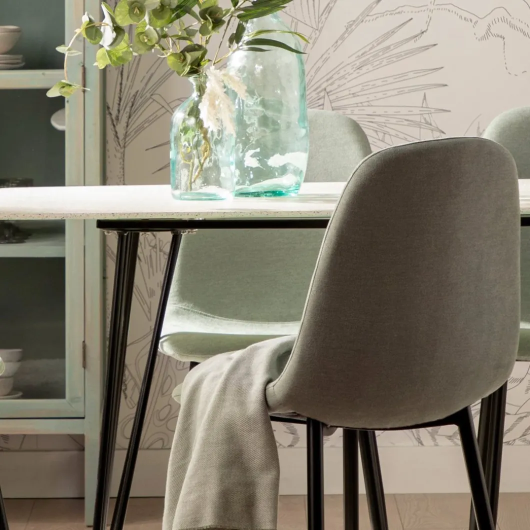 ¡Aprovéchate de este pack! La silla de comedor tapizada Ellis con pata metálica negra se convertirá en la protagonista de tu comedor gracias a su exclusivo y elegante diseño. Disfruta de esta polivalente silla de diseño ergonómico en donde más la necesites, ya sea como silla de comedor o también como silla de escritorio. Sus diferentes tapizados te dan la posibilidad de combinarla con diferentes estilos.