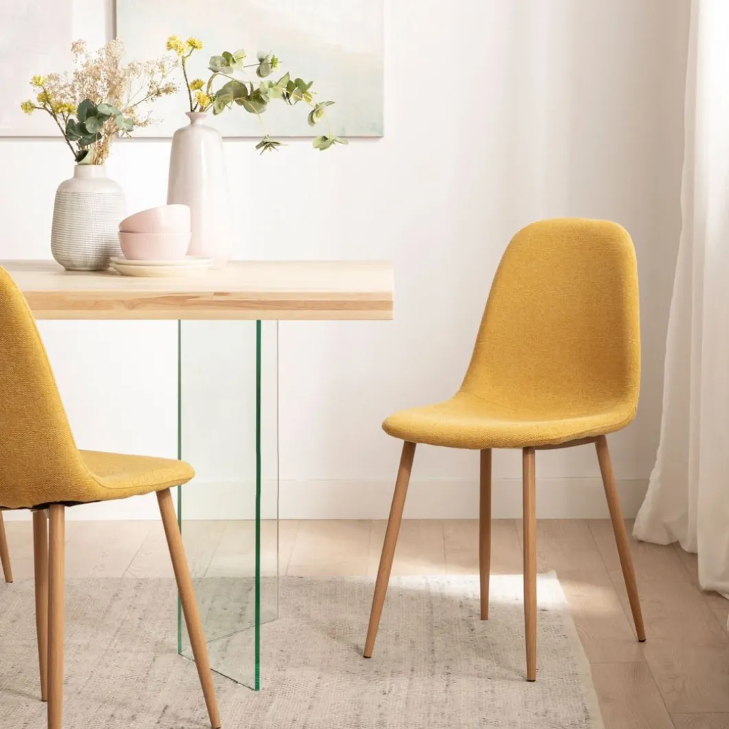 ¡Aprovéchate de este pack! La silla de comedor tapizada Ellis con pata metálica efecto madera se convertirá en la protagonista de tu comedor gracias a su exclusivo y elegante diseño. Disfruta de esta polivalente silla de diseño ergonómico en donde más la necesites, ya sea como silla de comedor o también como silla de escritorio. Sus diferentes tapizados te dan la posibilidad de combinarla con diferentes estilos.