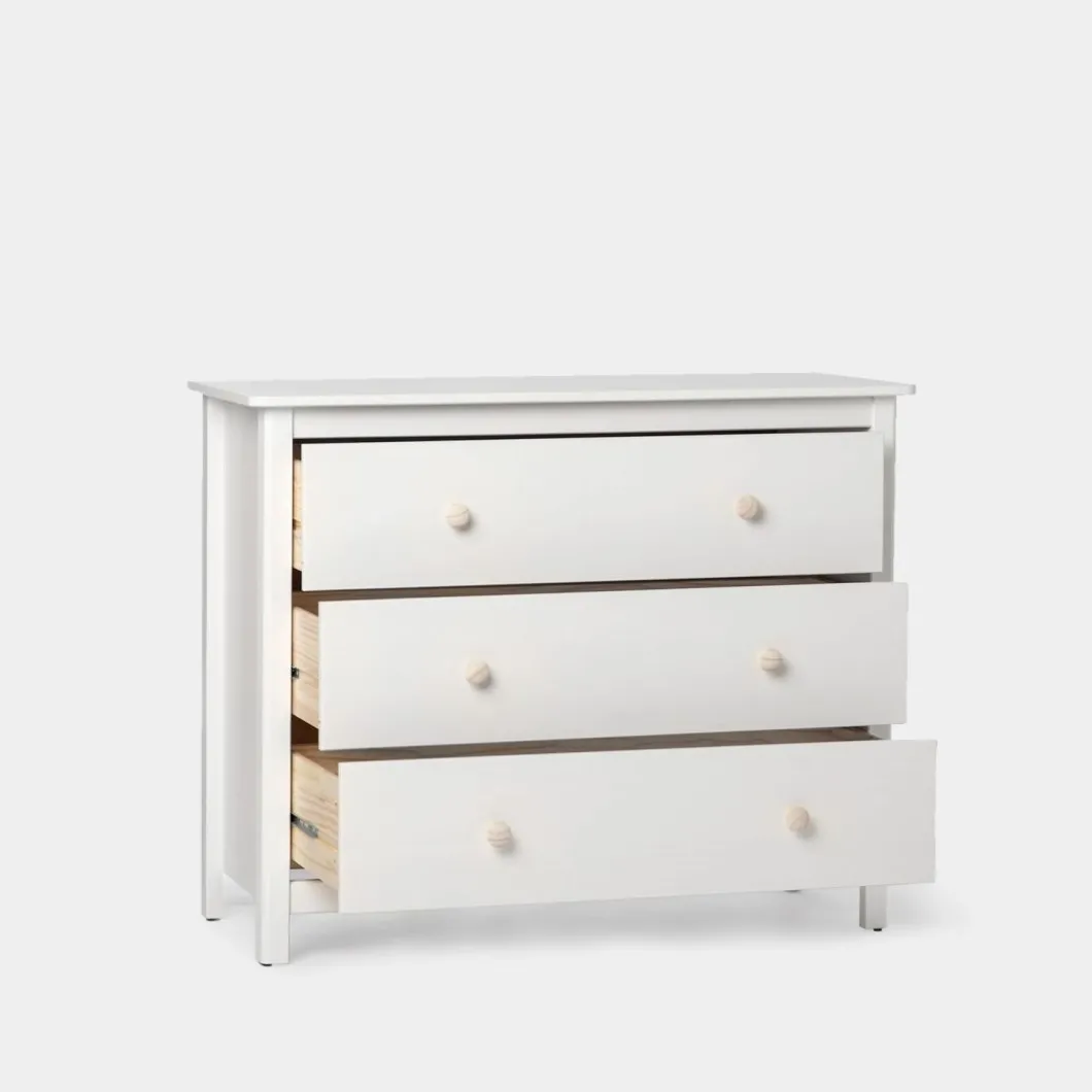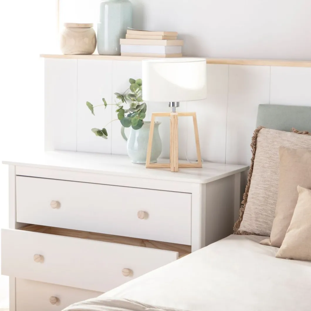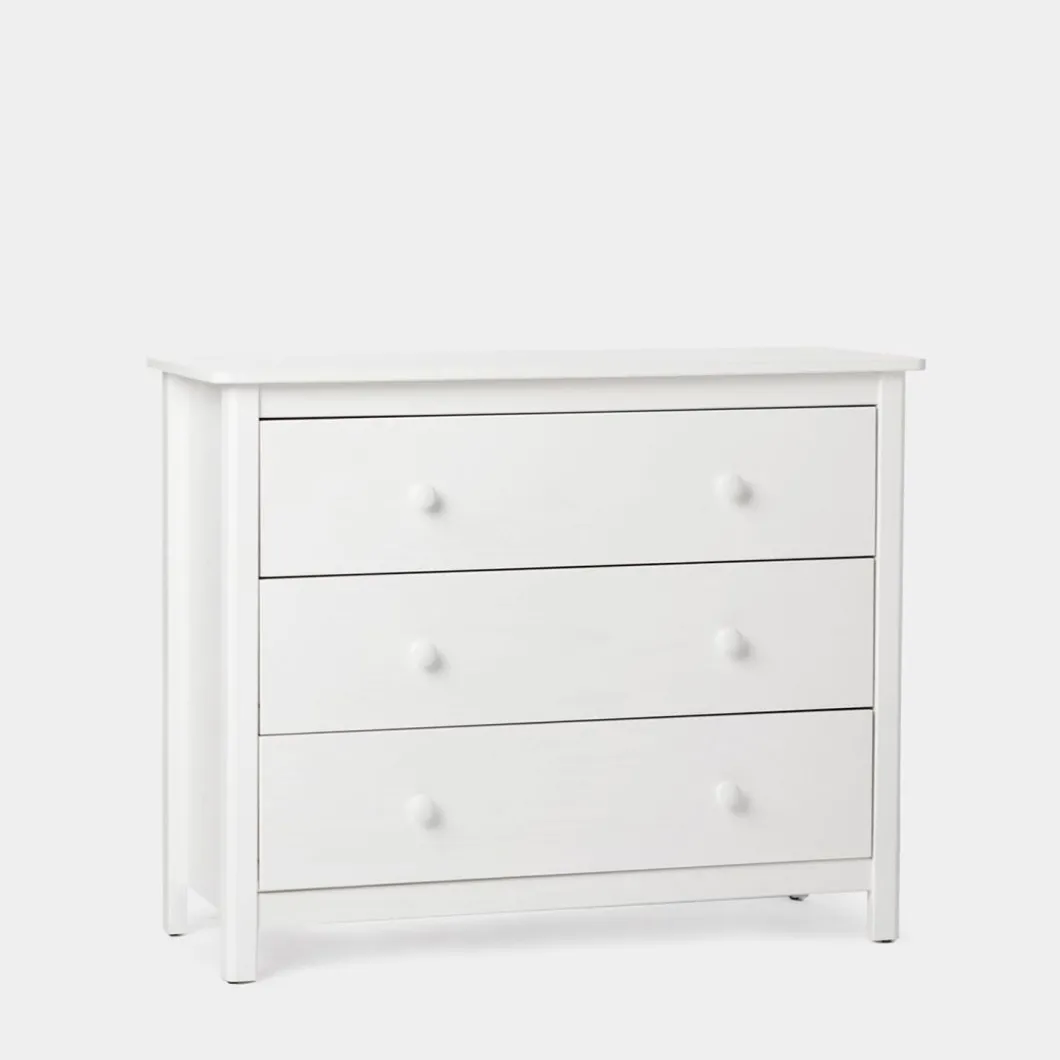 La cómoda lacada en blanco Eloise es el básico perfecto para tu dormitorio. Cuenta con tres cajones de gran capacidad que te ayudan a organizar y almacenar todas tus pertenencias. Incluye dos tipos de tiradores para que puedas intercambiarlos, ¡escoge el que más te guste!