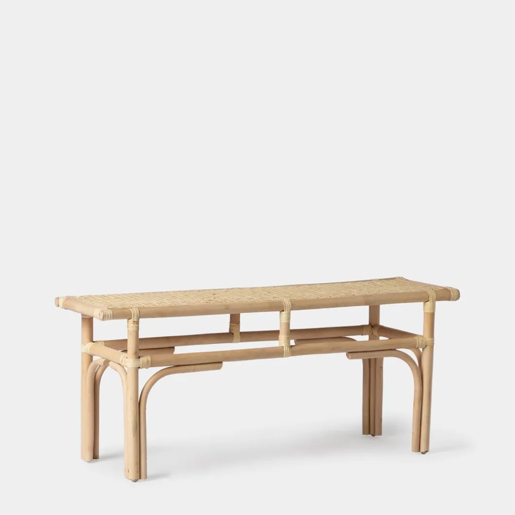 El banco en ratán natural Elos es una pieza versátil y multifuncional que puede utilizarse tanto como pie de cama, como banco para el recibidor. Ha sido elaborado a mano con ratán natural, por lo que cada pieza es única y puede presentar ligeras irregularidades propias del material y de su elaboración.