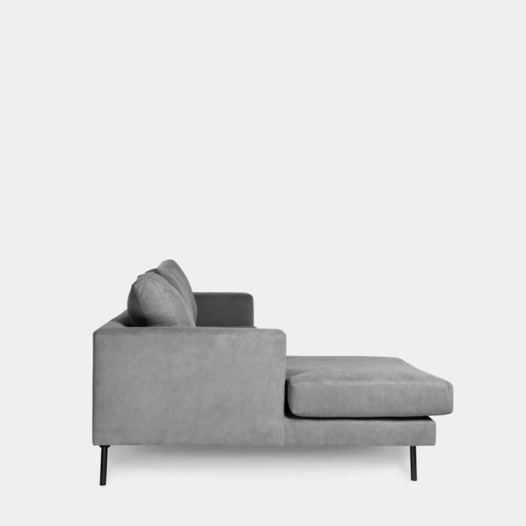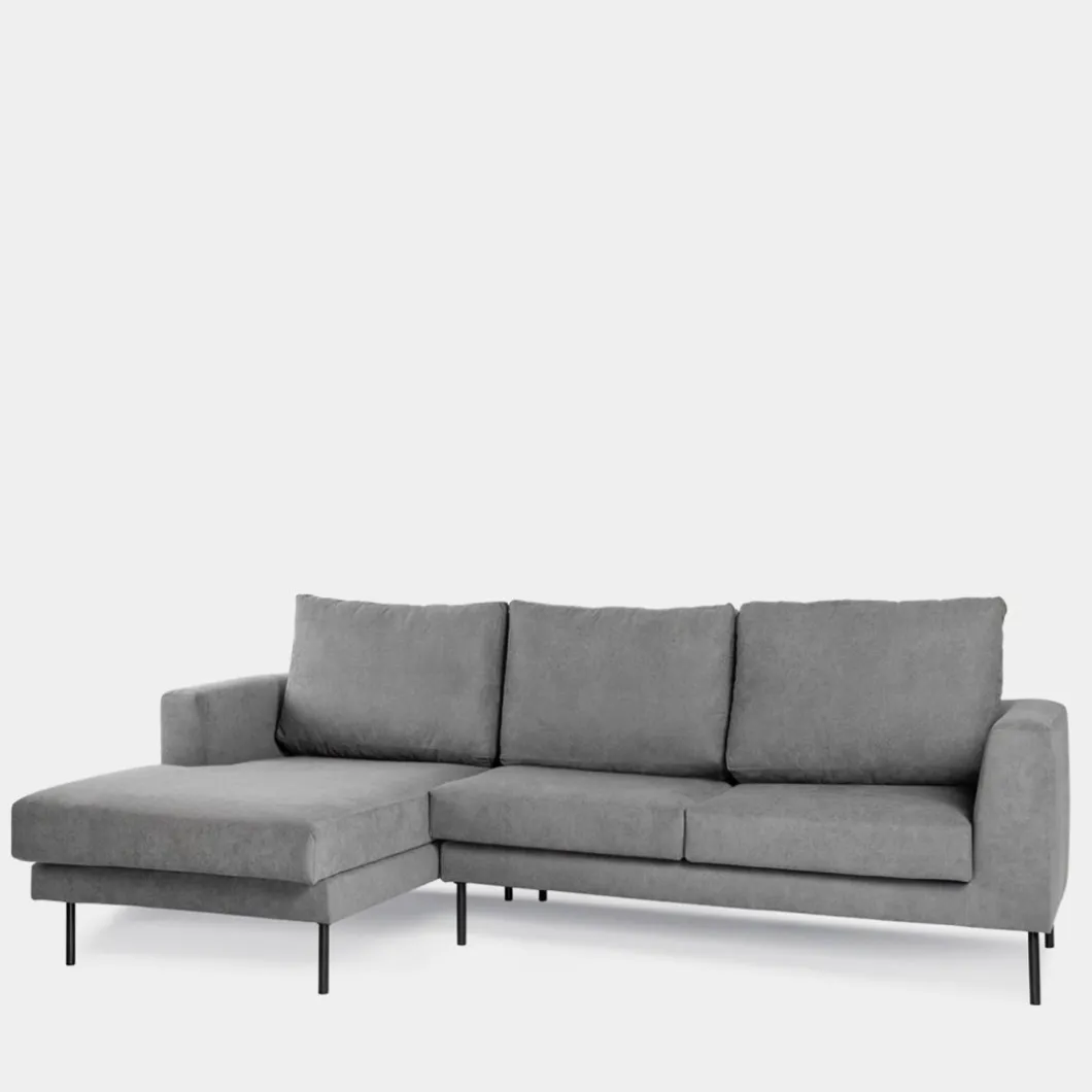 El sofá chaise longue tres plazas gris Emma es ideal para completar tu salón. Es cómodo, práctico y muy de tendencia. También lo puedes encontrar disponible en color beige. La chaise longue, al mirar de frente el sofá, queda ubicada a la izquierda.